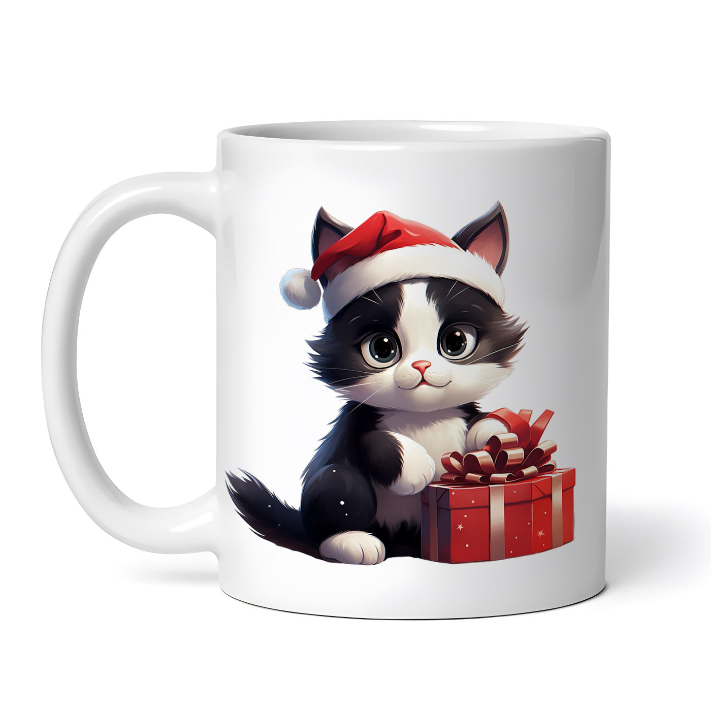 Cana ceramica, Pisica cu cadoul de craciun, NO814, 330 ml, Multicolor