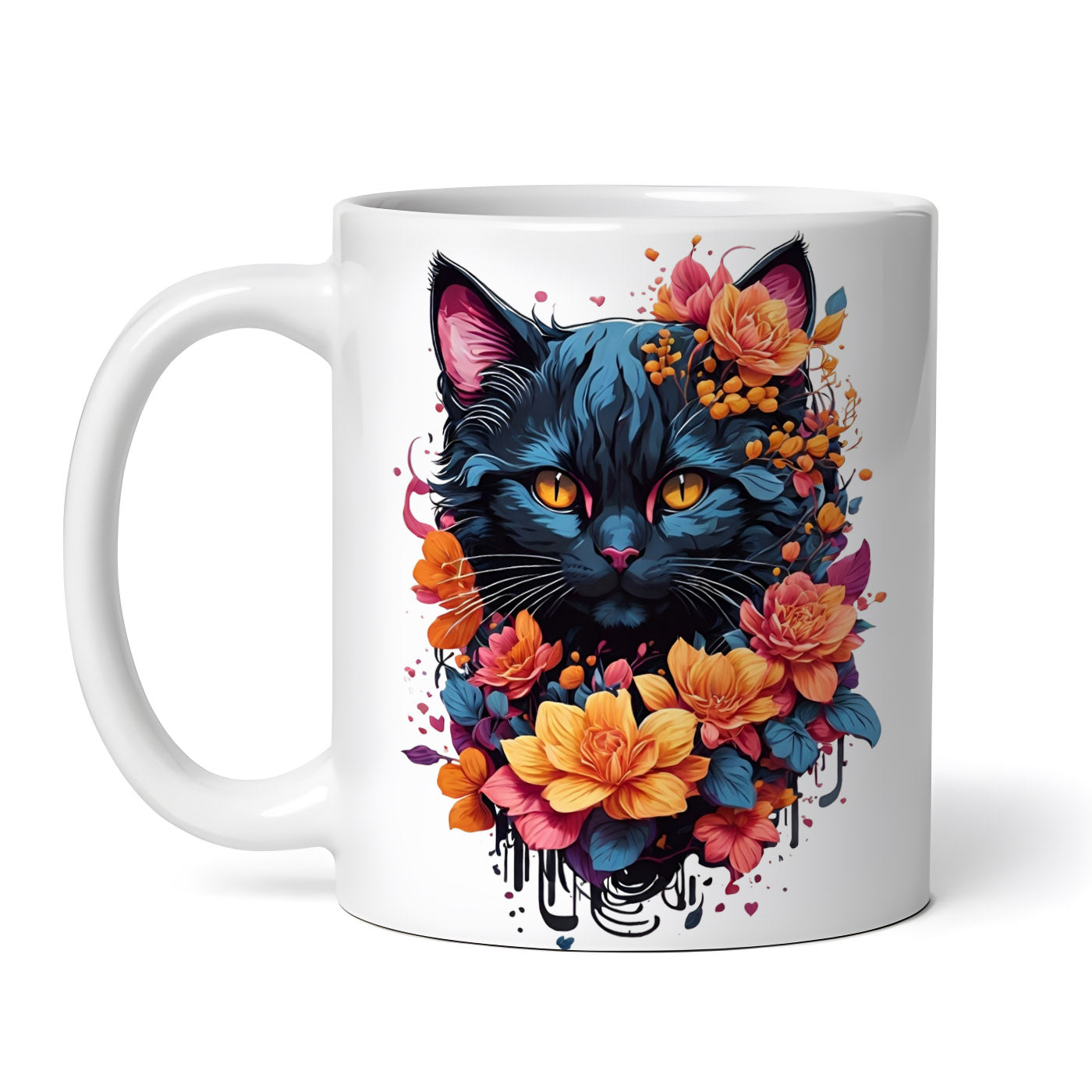 Cana ceramica, Pisica cu ghirlanda, NO7103, 330 ml, Multicolor