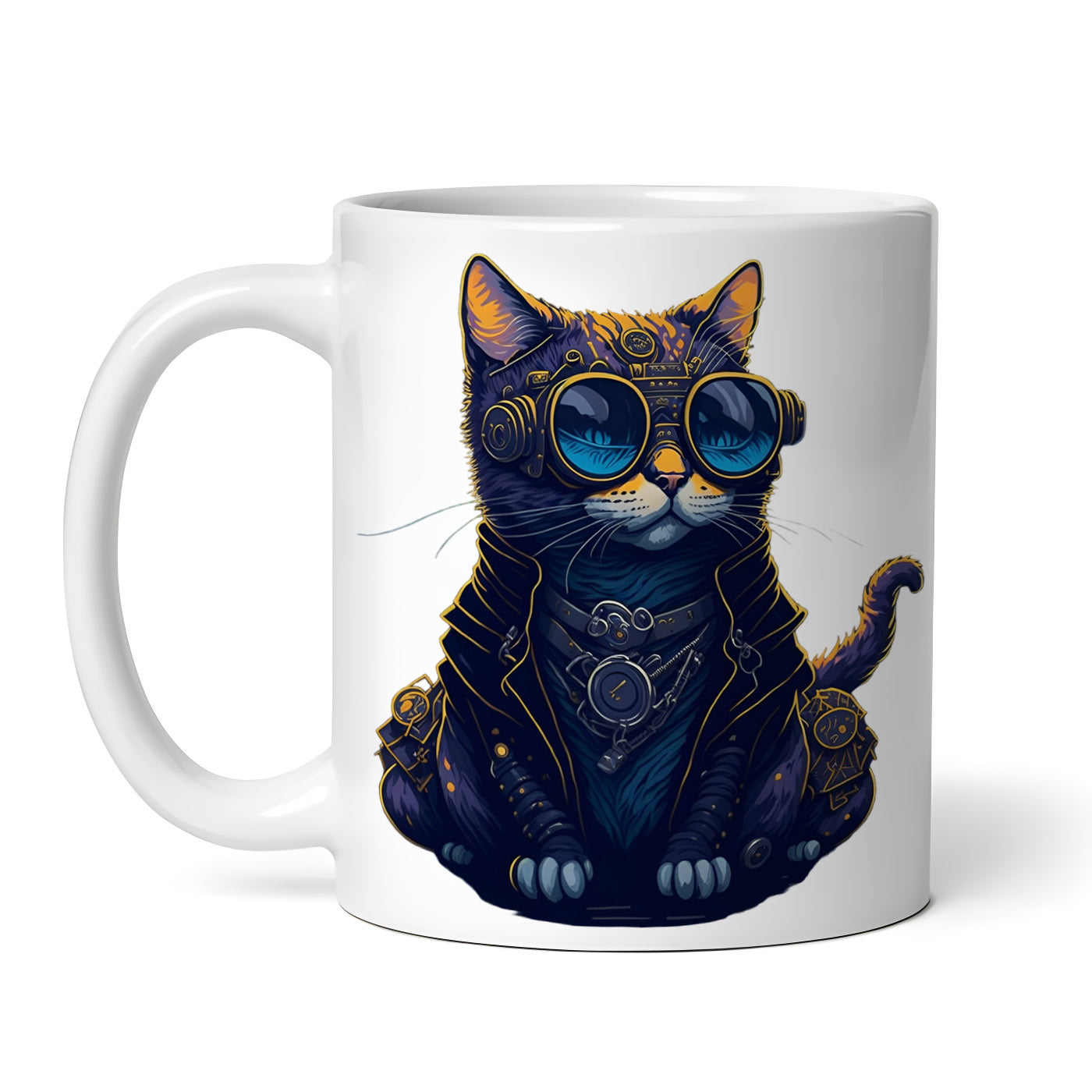 Cana ceramica, Pisica cu ochelari de soare, NO7033, 330 ml, Multicolor