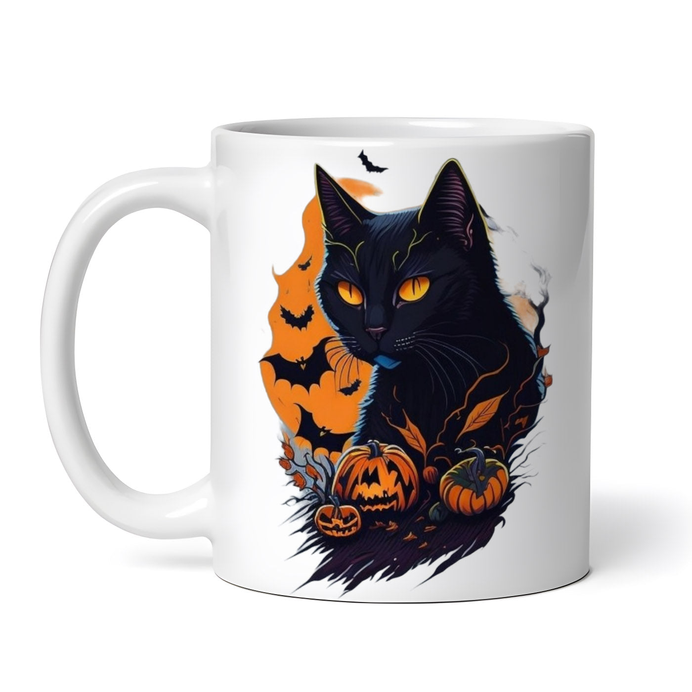 Cana ceramica, Pisica cu ochi luminosi de halloween, NO7482, 330 ml, Multicolor