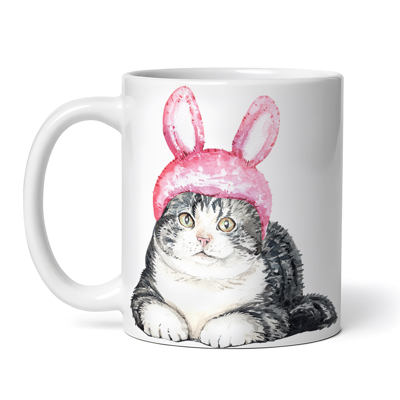 Cana ceramica, Pisica cu urechi de iepure sta pe jos, NO11232, 330 ml, Multicolor