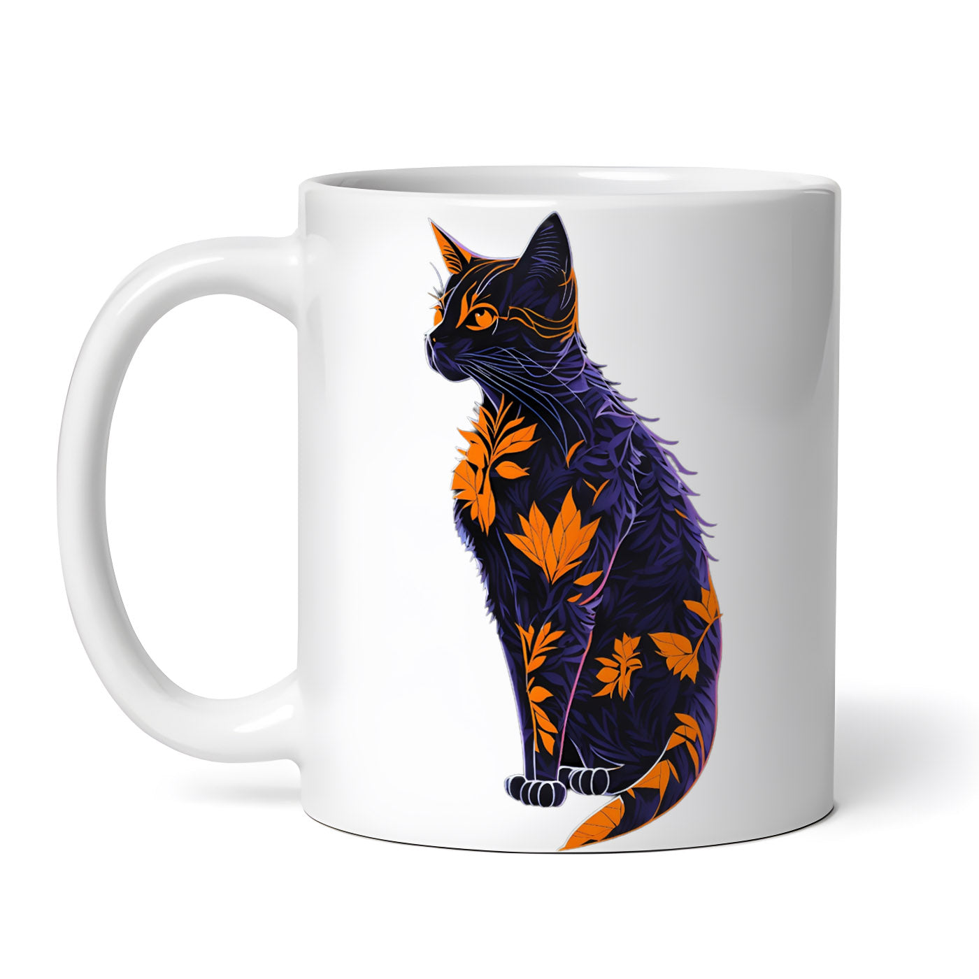 Cana ceramica, Pisica din frunze, NO6720, 330 ml, Multicolor