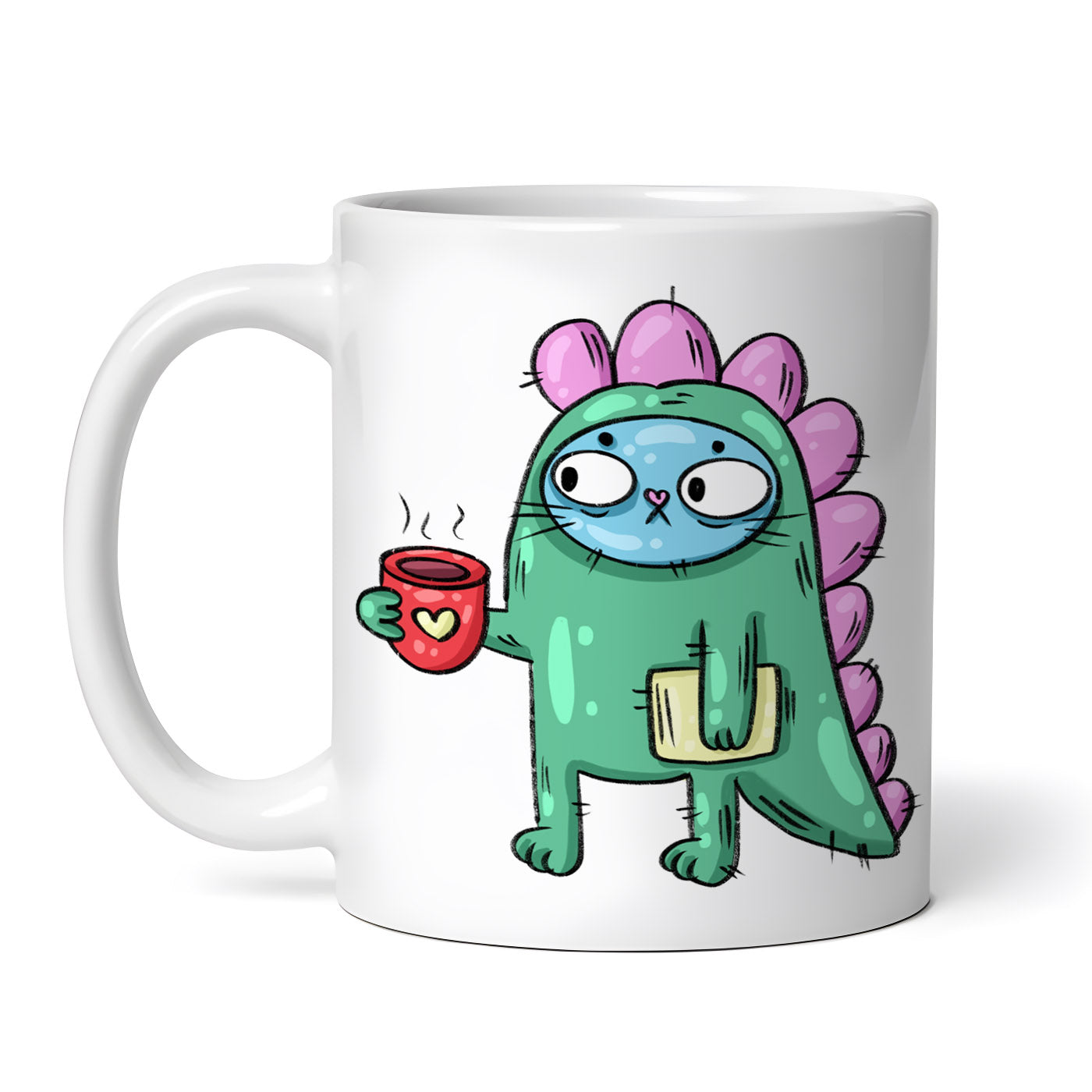 Cana ceramica, Pisica dinozaur, NO11237, 330 ml, Multicolor