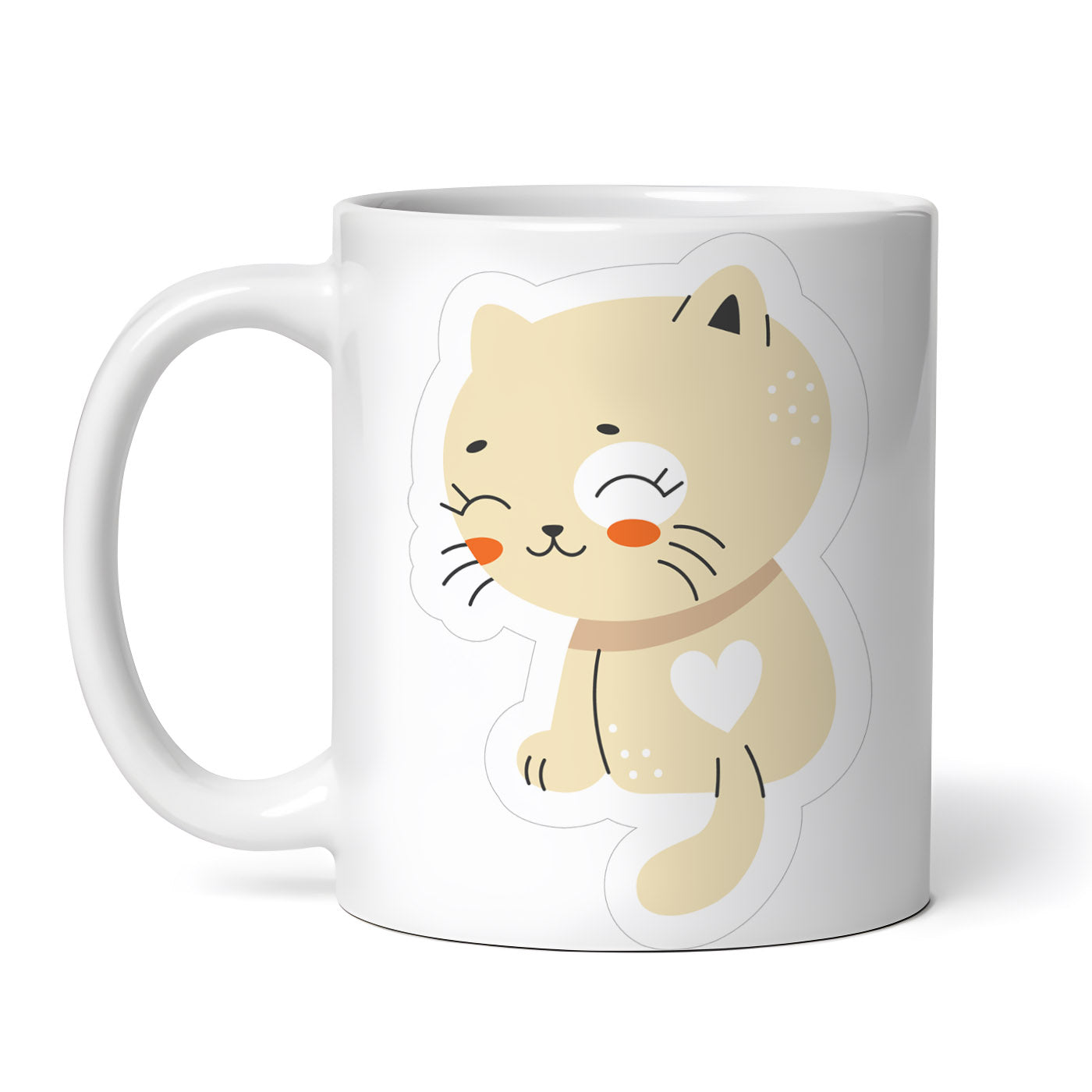 Cana ceramica, Pisica draguta cu inima mare, NO11241, 330 ml, Multicolor