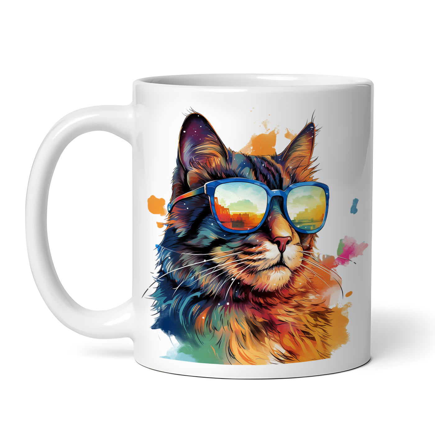 Cana ceramica, Pisica ganditoare cu ochelari, NO4290, 330 ml, Multicolor