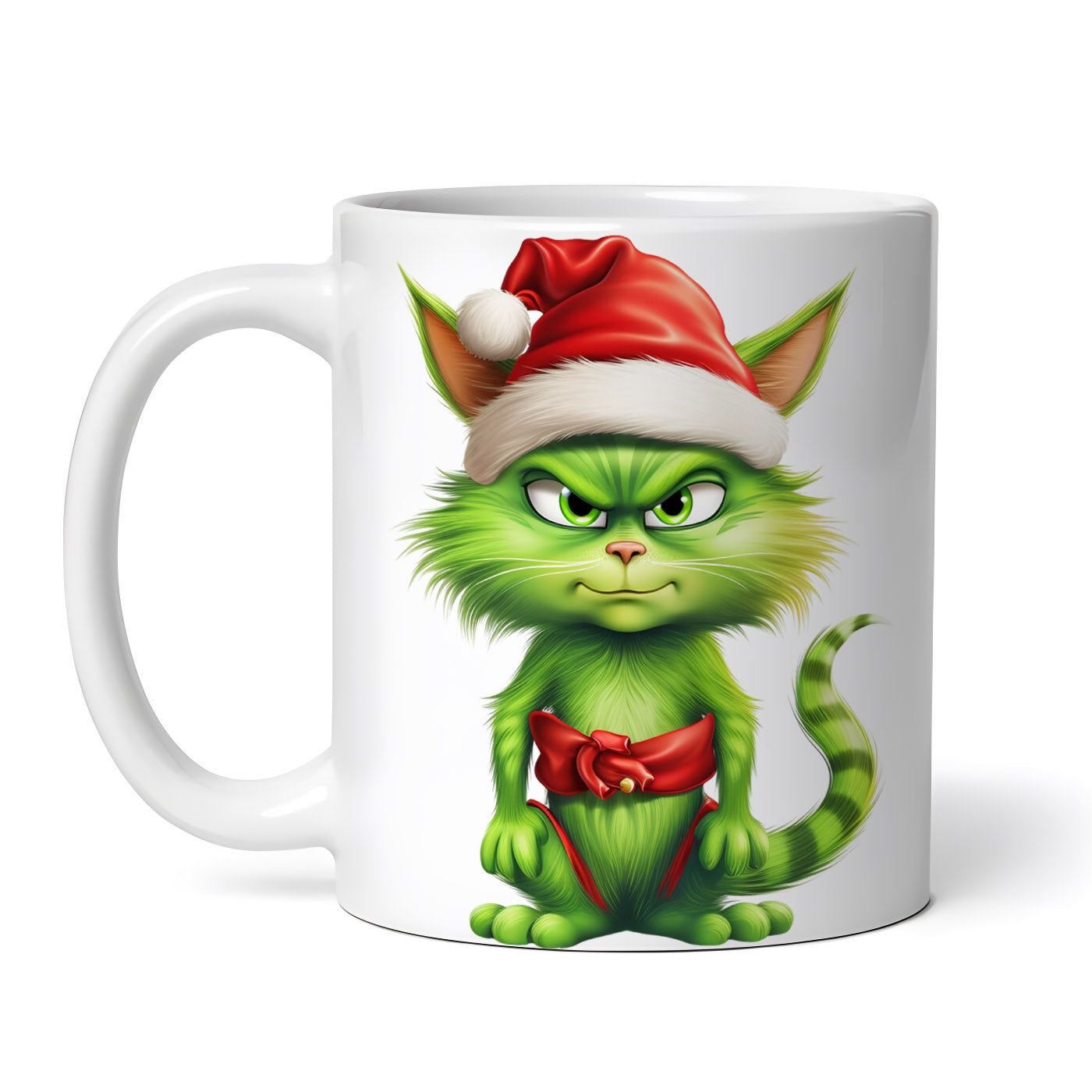 Cana ceramica, Pisica Grinch cu centura rosie, NO4079, 330 ml, Multicolor