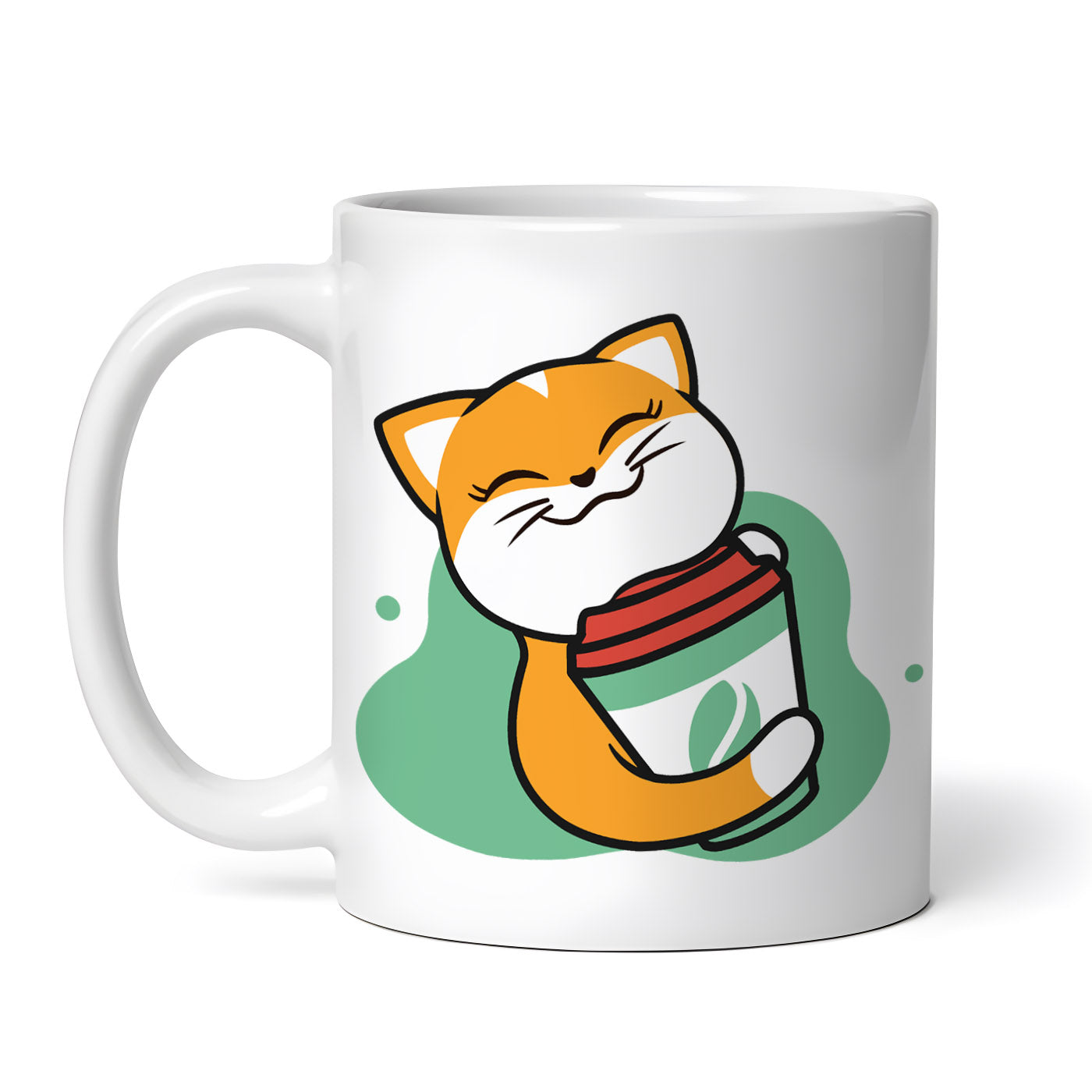 Cana ceramica, Pisica imbratisand cafeaua, NO11256, 330 ml, Multicolor