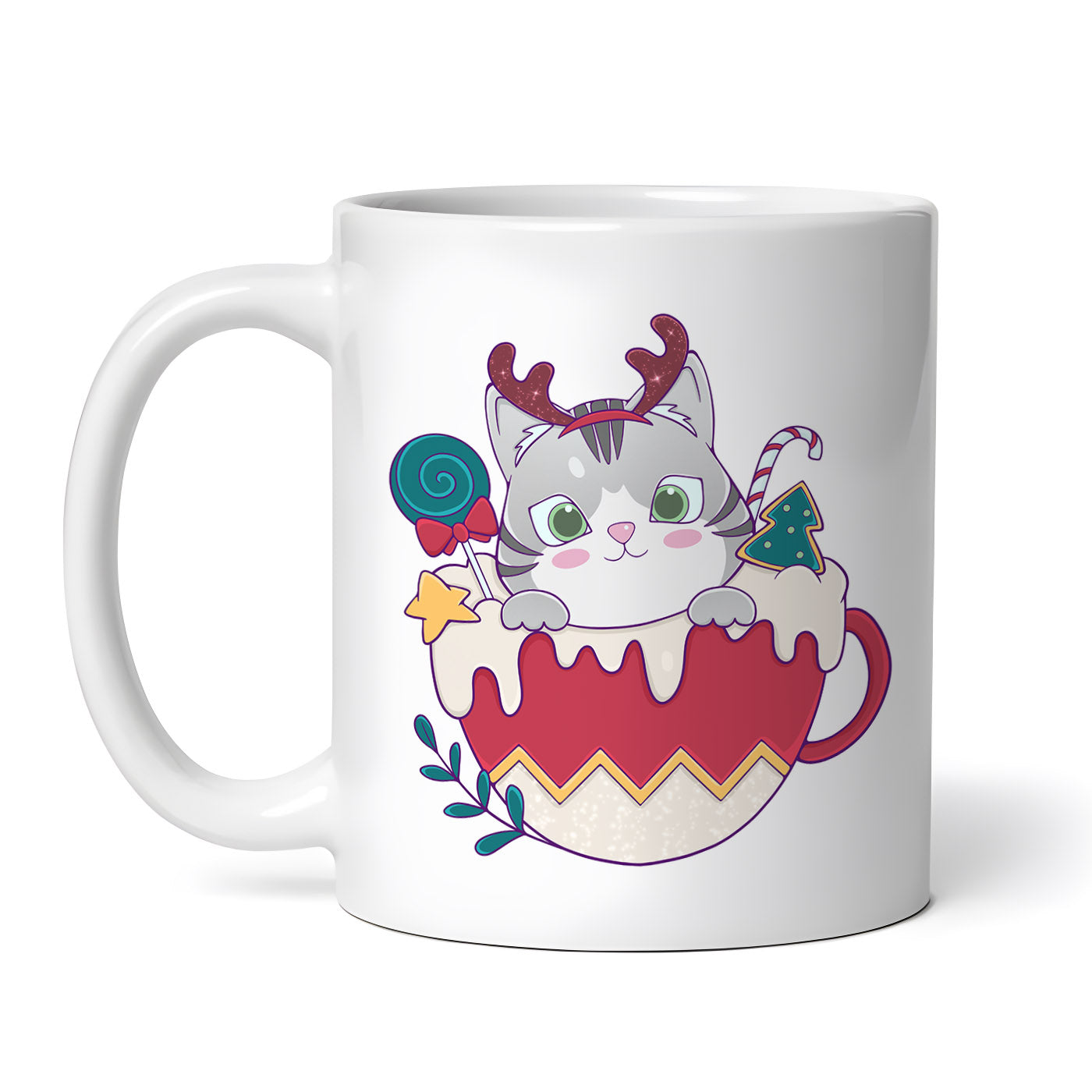 Cana ceramica, Pisica in ceasca, NO5669, 330 ml, Multicolor