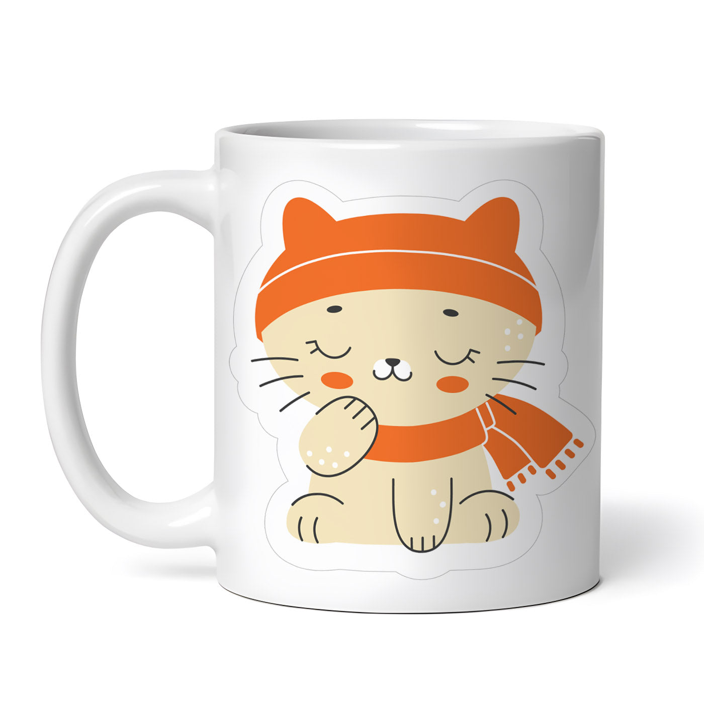 Cana ceramica, Pisica invelita cu fular, NO11264, 330 ml, Multicolor