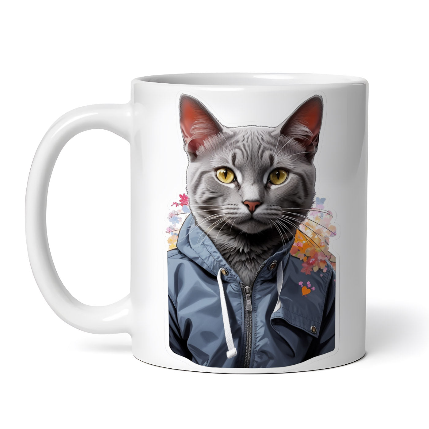 Cana ceramica, Pisica Korat cu jacheta, NO8403, 330 ml, Multicolor