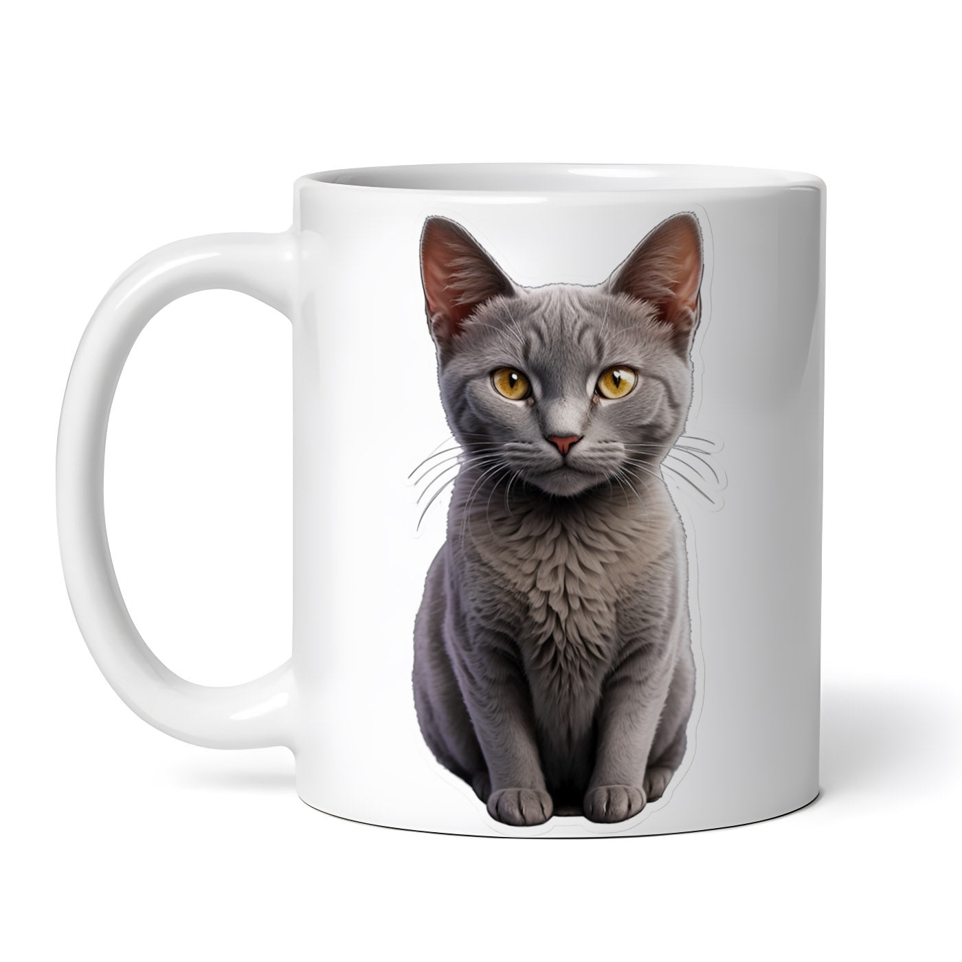 Cana ceramica, Pisica Korat cu mustati, NO8406, 330 ml, Multicolor
