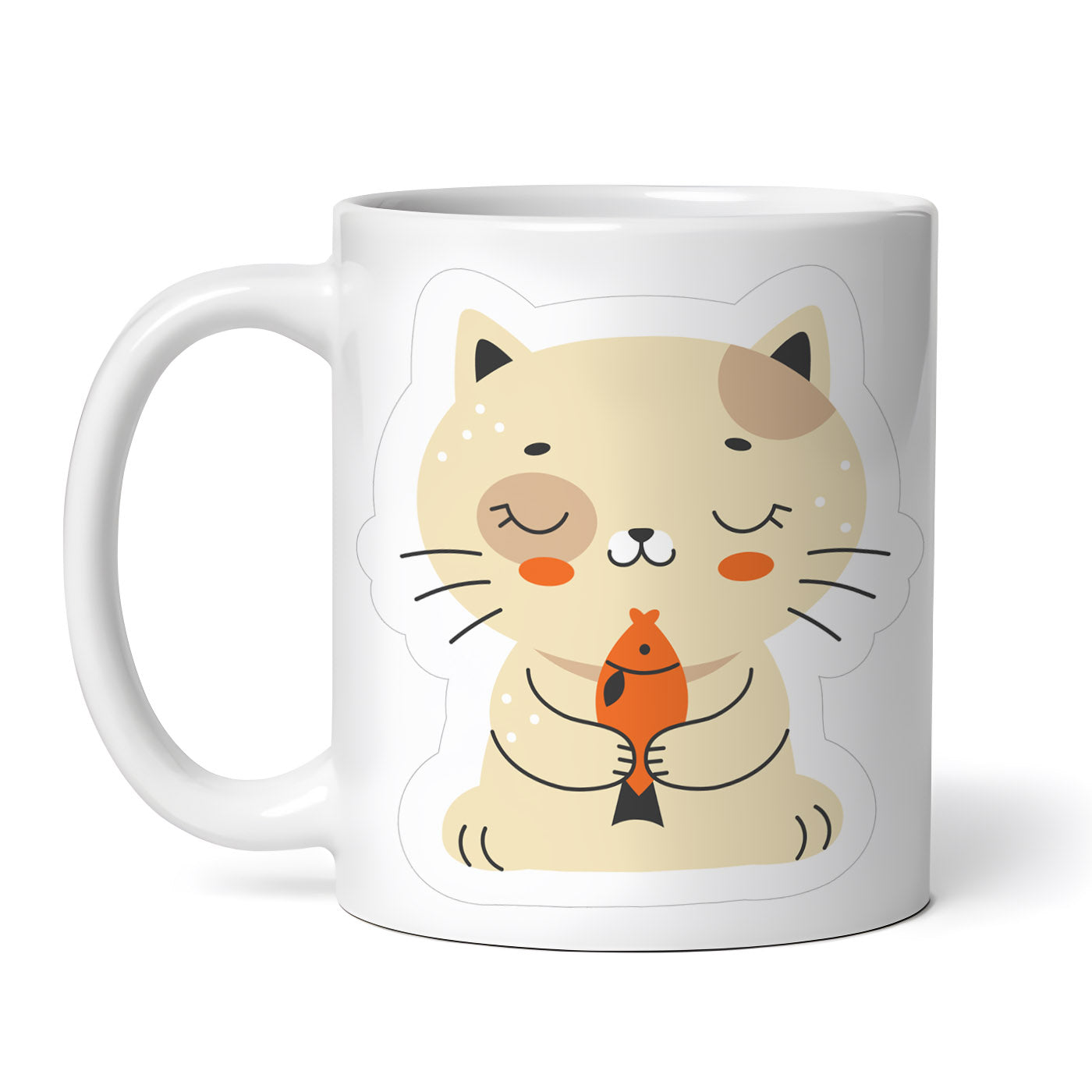 Cana ceramica, Pisica mirosind un peste, NO11272, 330 ml, Multicolor