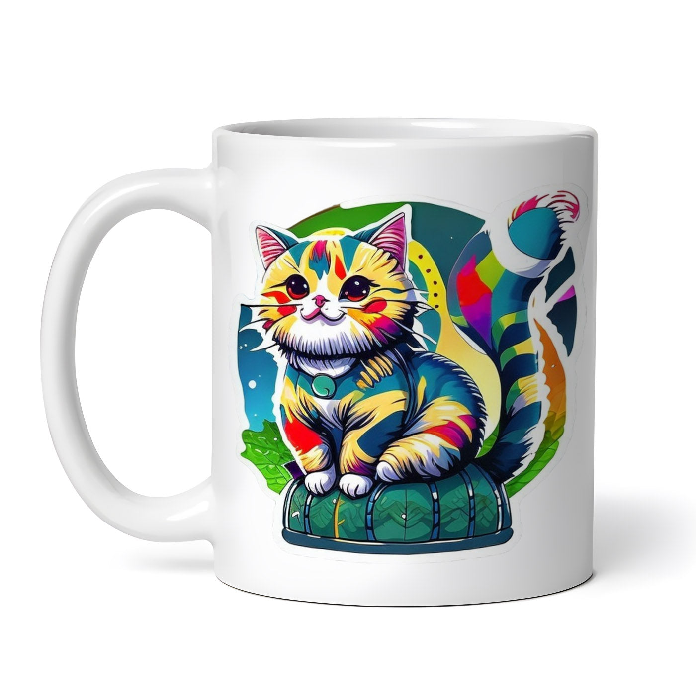 Cana ceramica, Pisica multicolora, NO7554, 330 ml, Multicolor