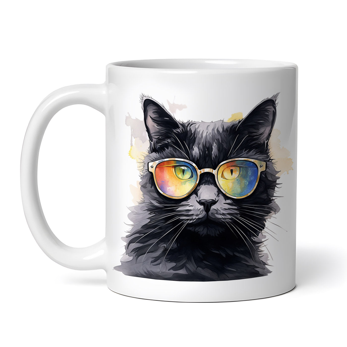 Cana ceramica, Pisica neagra cu ochelari, NO627, 330 ml, Multicolor