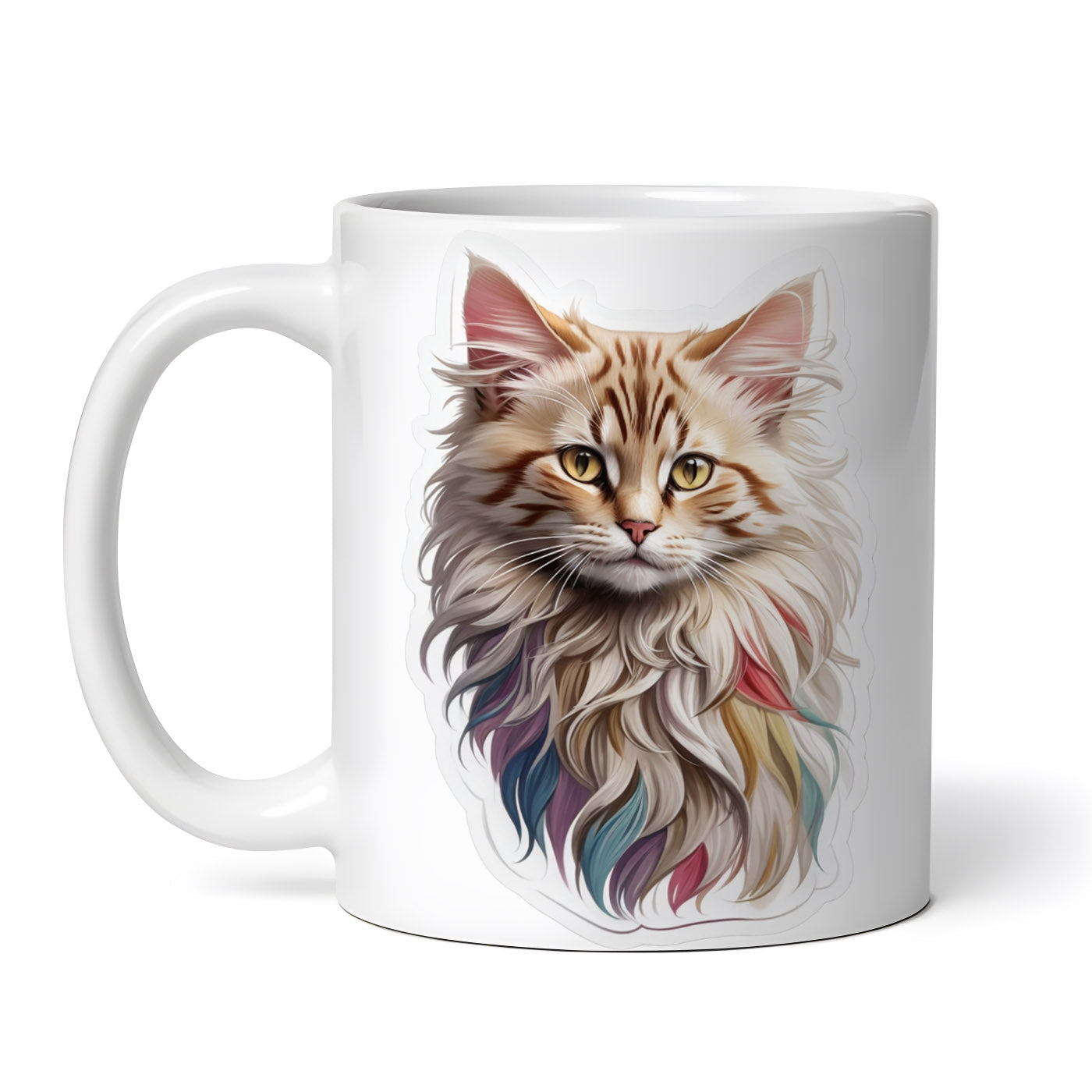 Cana ceramica, Pisica orientala cu par lung, NO8639, 330 ml, Multicolor