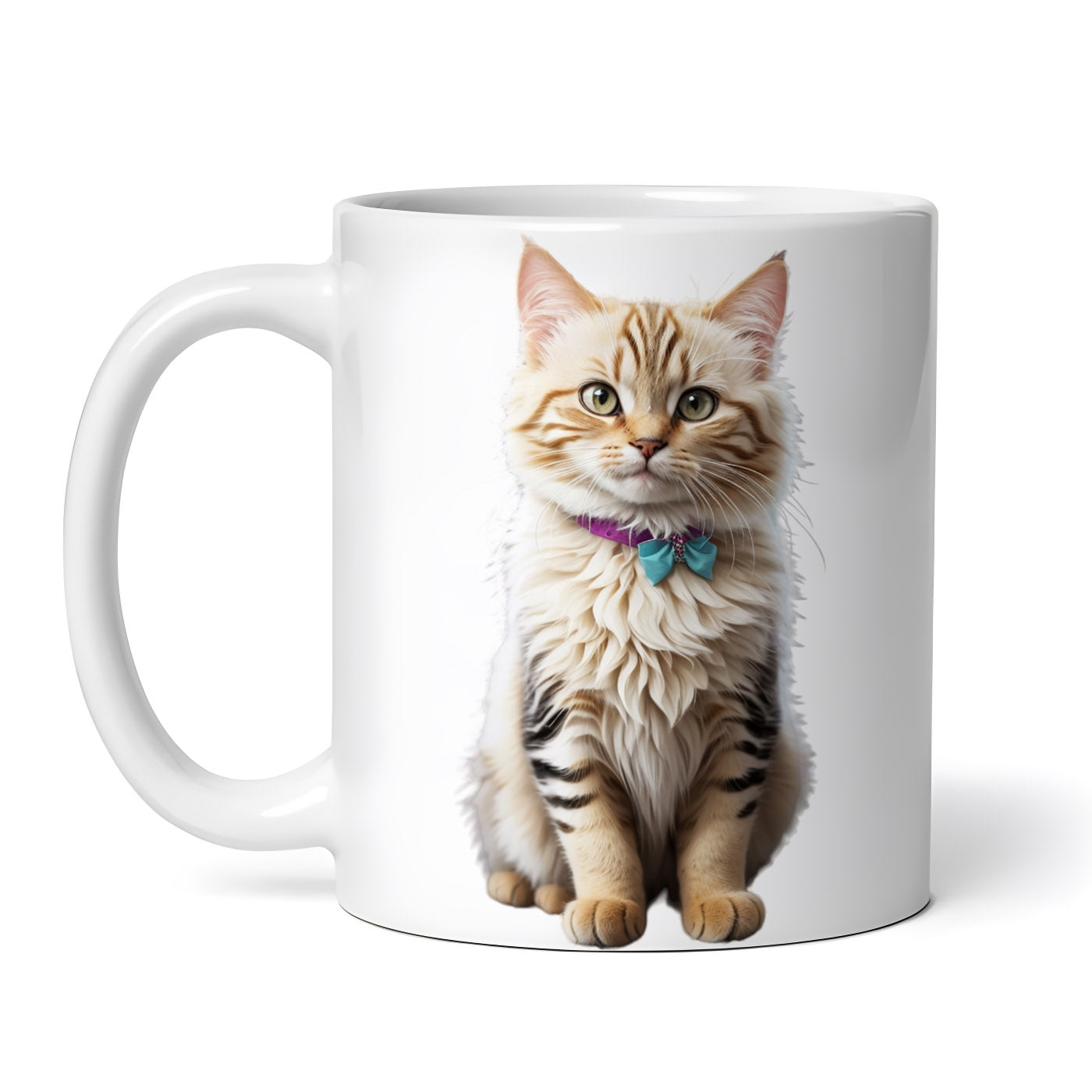 Cana ceramica, Pisica Pixie bob cu fundita, NO8732, 330 ml, Multicolor