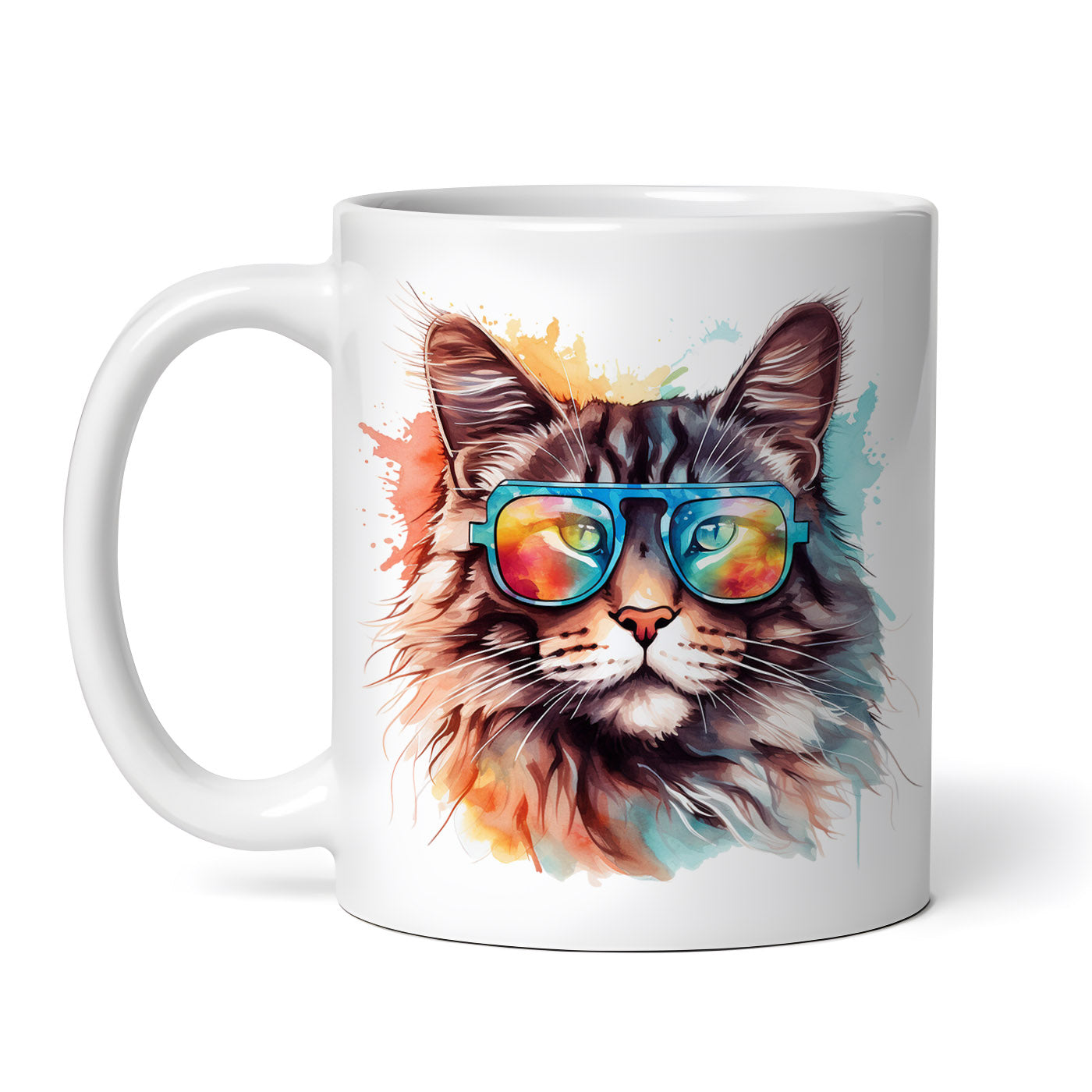 Cana ceramica, Pisica salbatica cu ochelari, NO2659, 330 ml, Multicolor