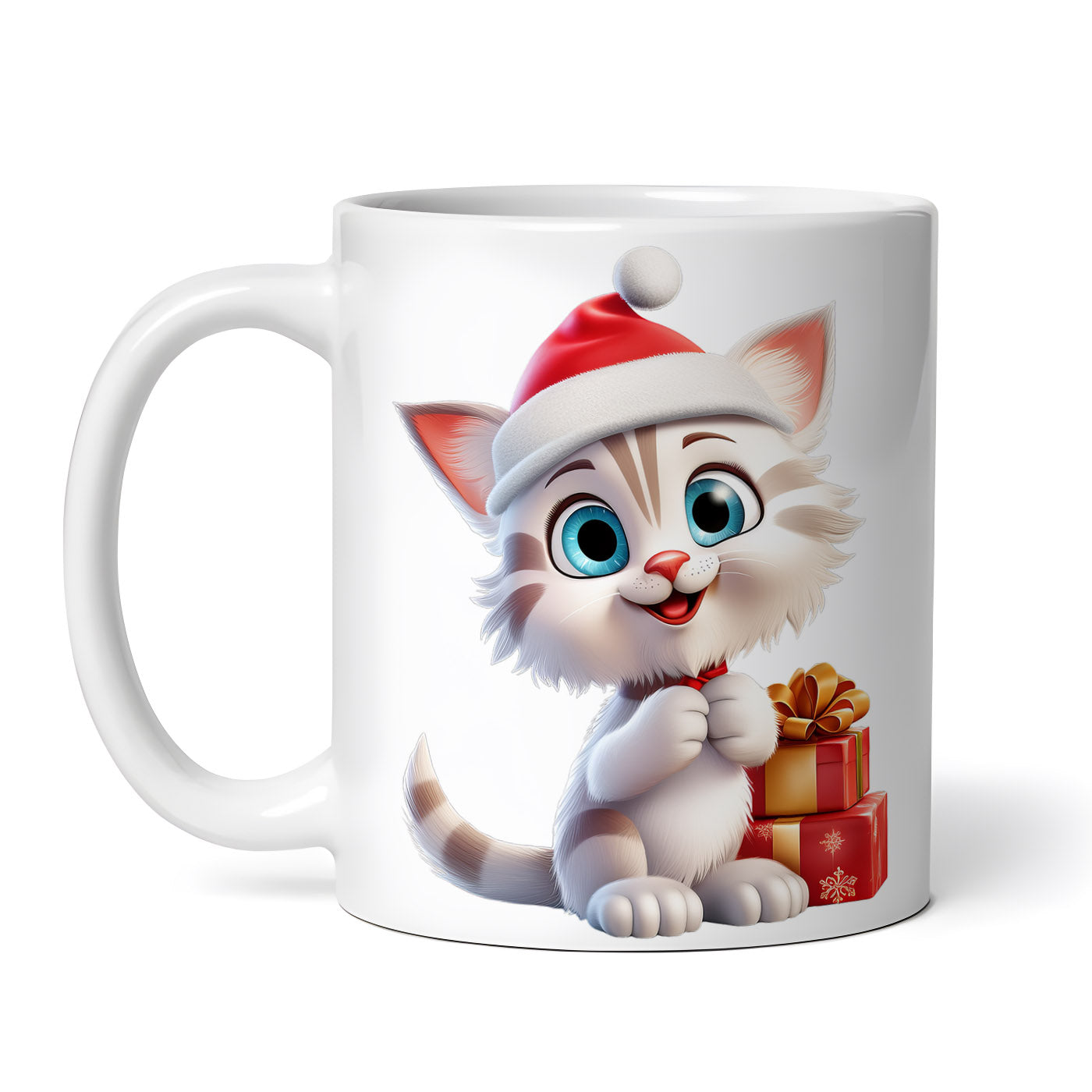 Cana ceramica, Pisica tigrata cu cadouri de craciun, NO6265, 330 ml, Multicolor