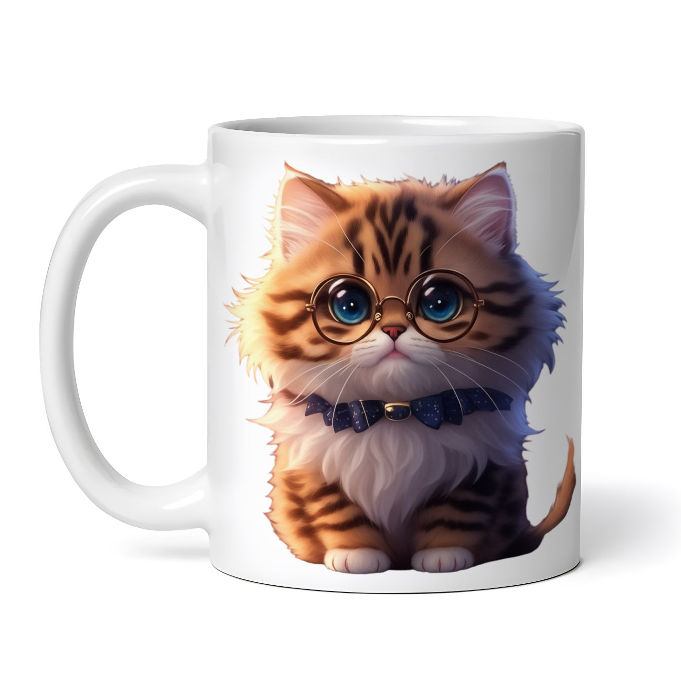 Cana ceramica, Pisica tigrata cu ochelari, NO6835, 330 ml, Multicolor