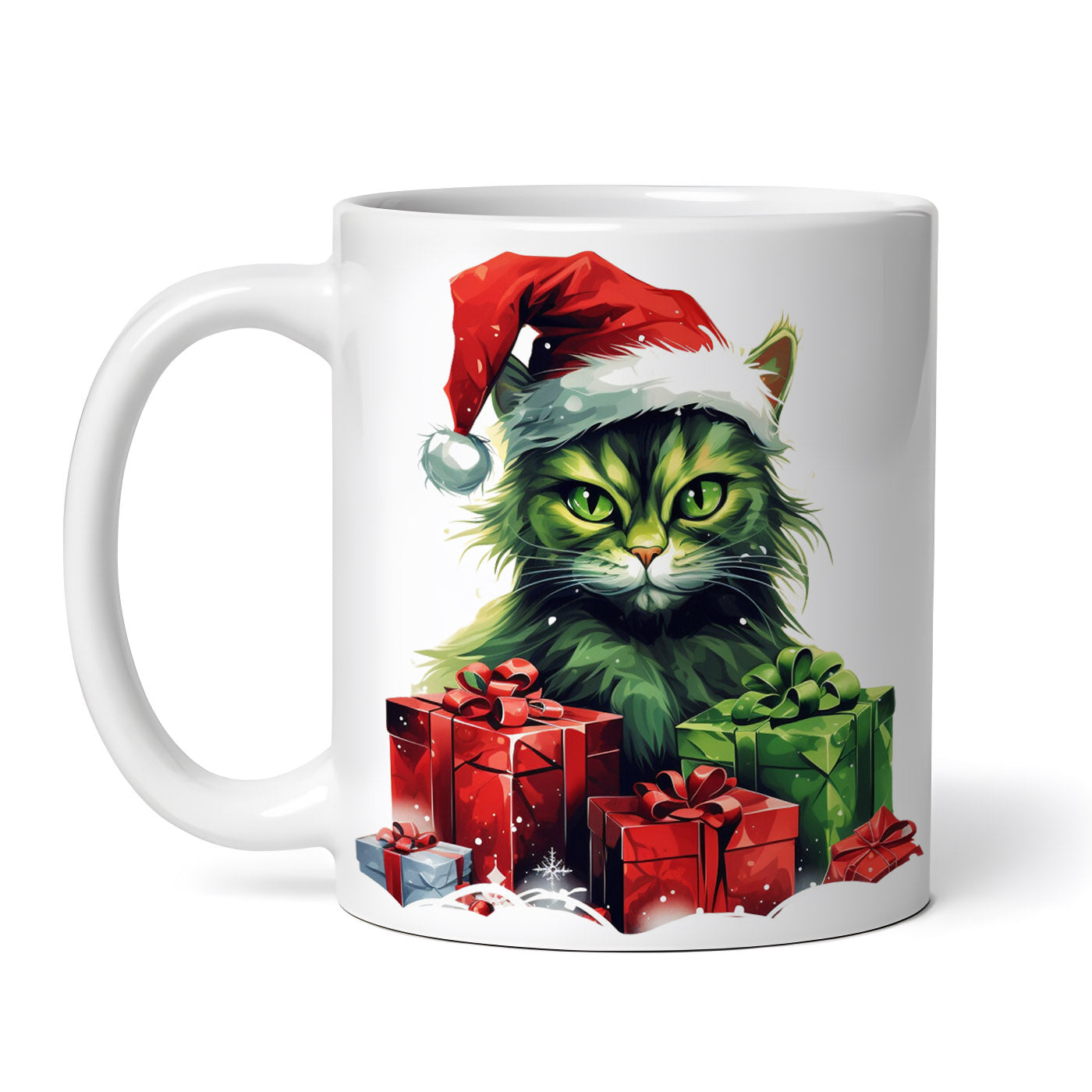 Cana ceramica, Pisica verde cu privire profunda, NO3922, 330 ml, Multicolor