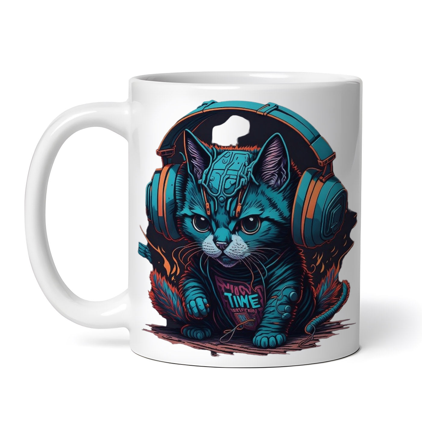 Cana ceramica, Pisoi cu casti, NO7094, 330 ml, Multicolor