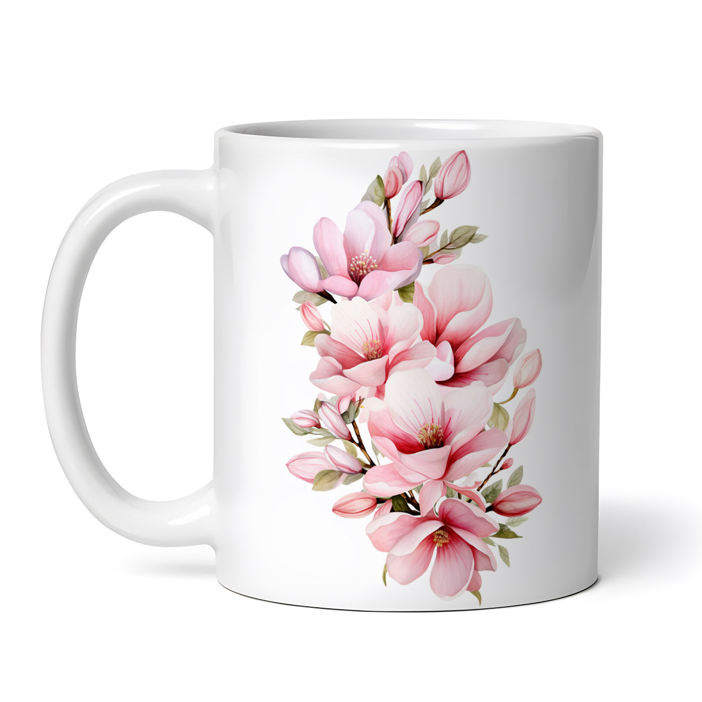 Cana ceramica, Ramura cu magnolii, NO2308, 330 ml, Multicolor