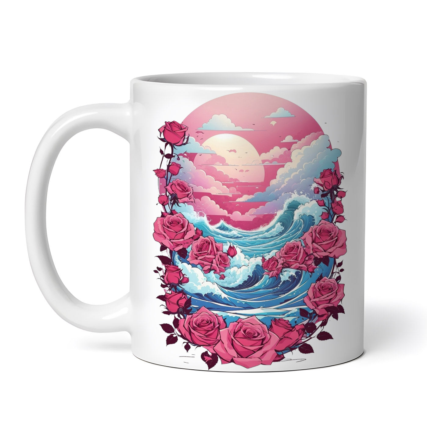 Cana ceramica, Raul de trandafiri, NO6993, 330 ml, Multicolor