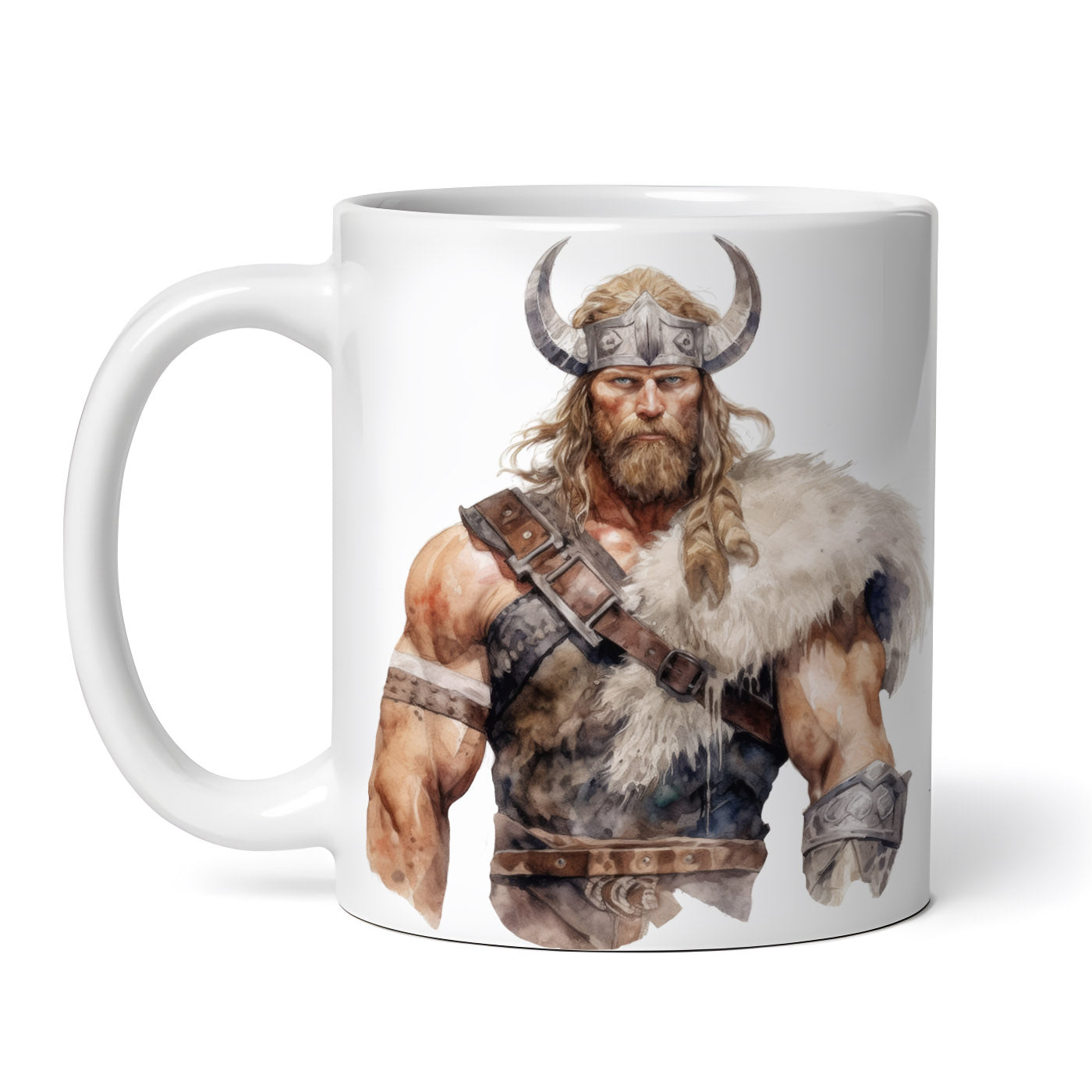 Cana ceramica, Razboinic viking cu blana pe umar, NO1889, 330 ml, Multicolor