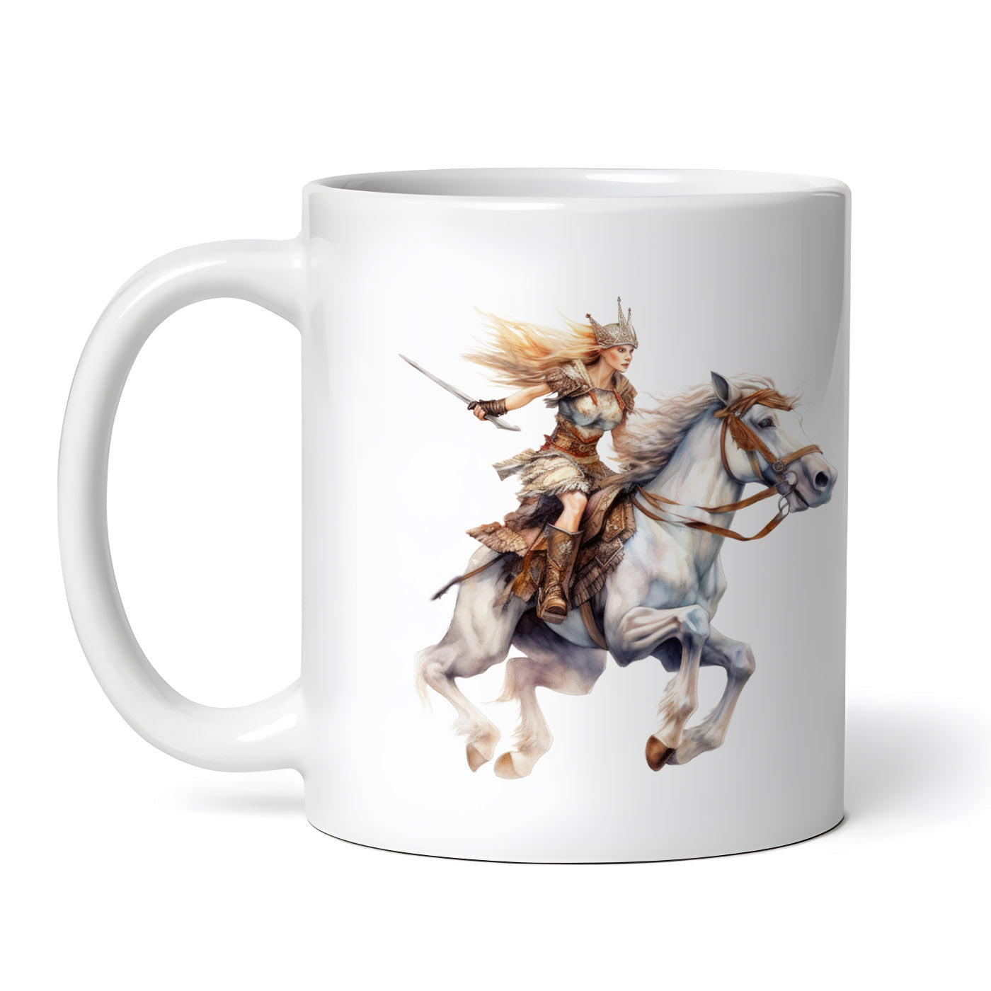 Cana ceramica, Razboinica viking pe cal alb, NO1512, 330 ml, Multicolor
