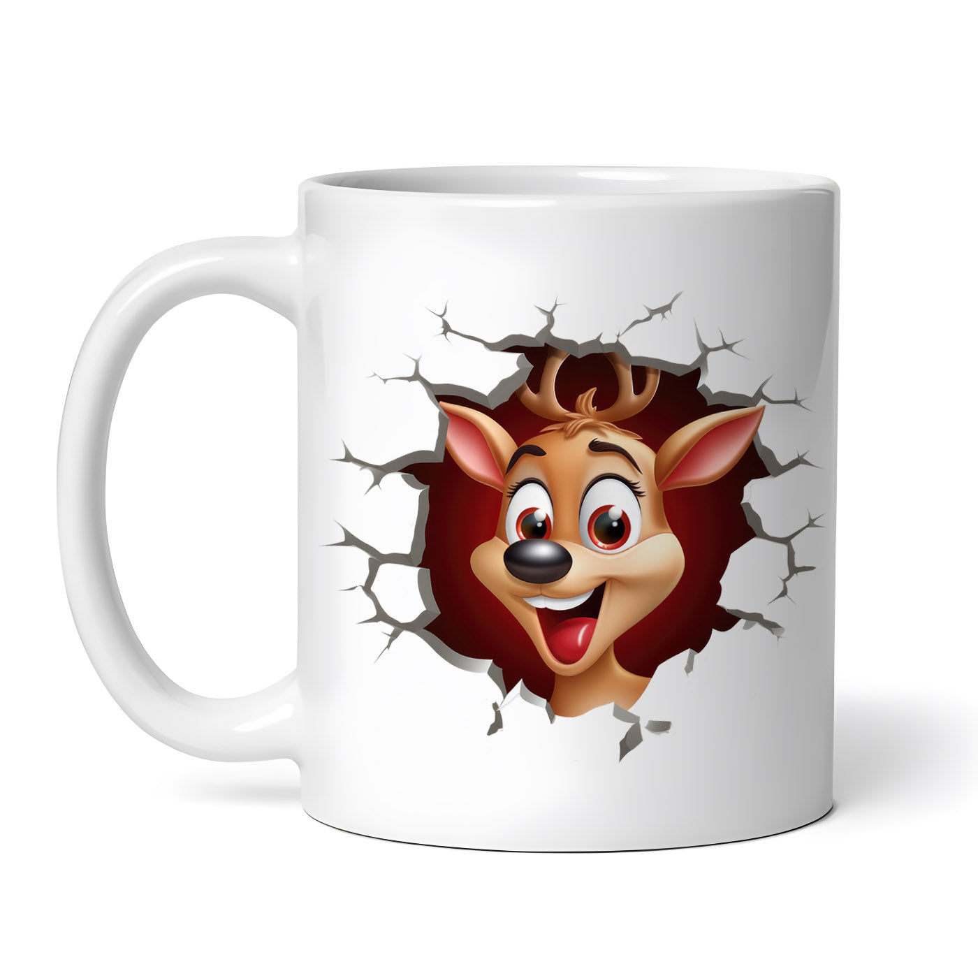 Cana ceramica, Renul nastrusnic, NO4718, 330 ml, Multicolor