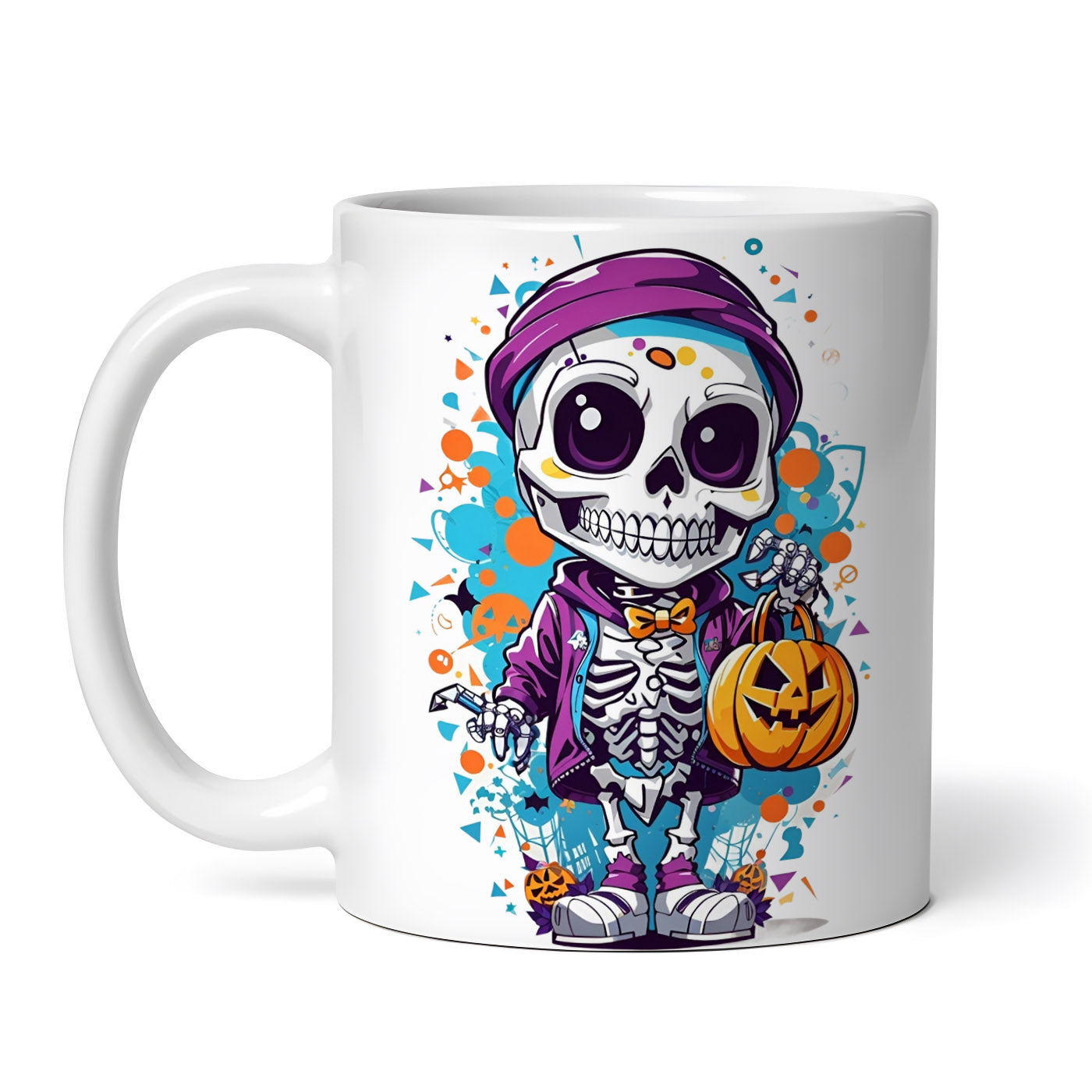 Cana ceramica, Scheletel de halloween, NO6989, 330 ml, Multicolor