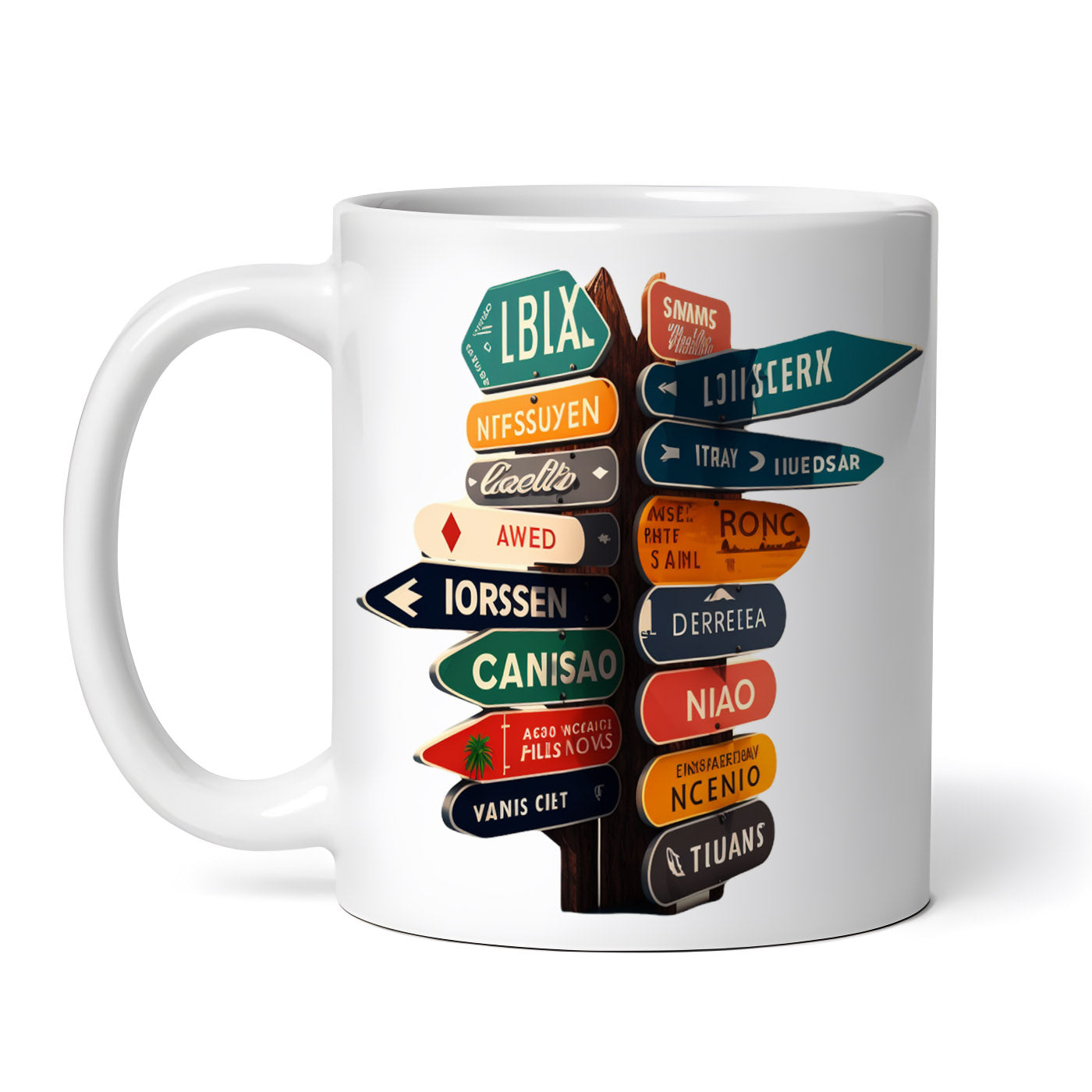 Cana ceramica, Semne indicatoare pentru directie de drum, NO9092, 330 ml, Multicolor