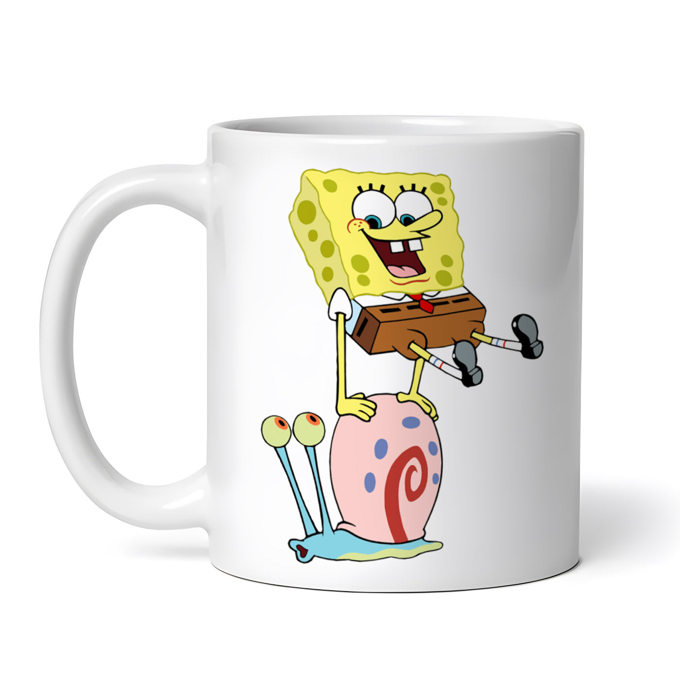 Cana ceramica, SpongeBob sarind pe melcul Gary Meme, NO10031, 330 ml, Multicolor