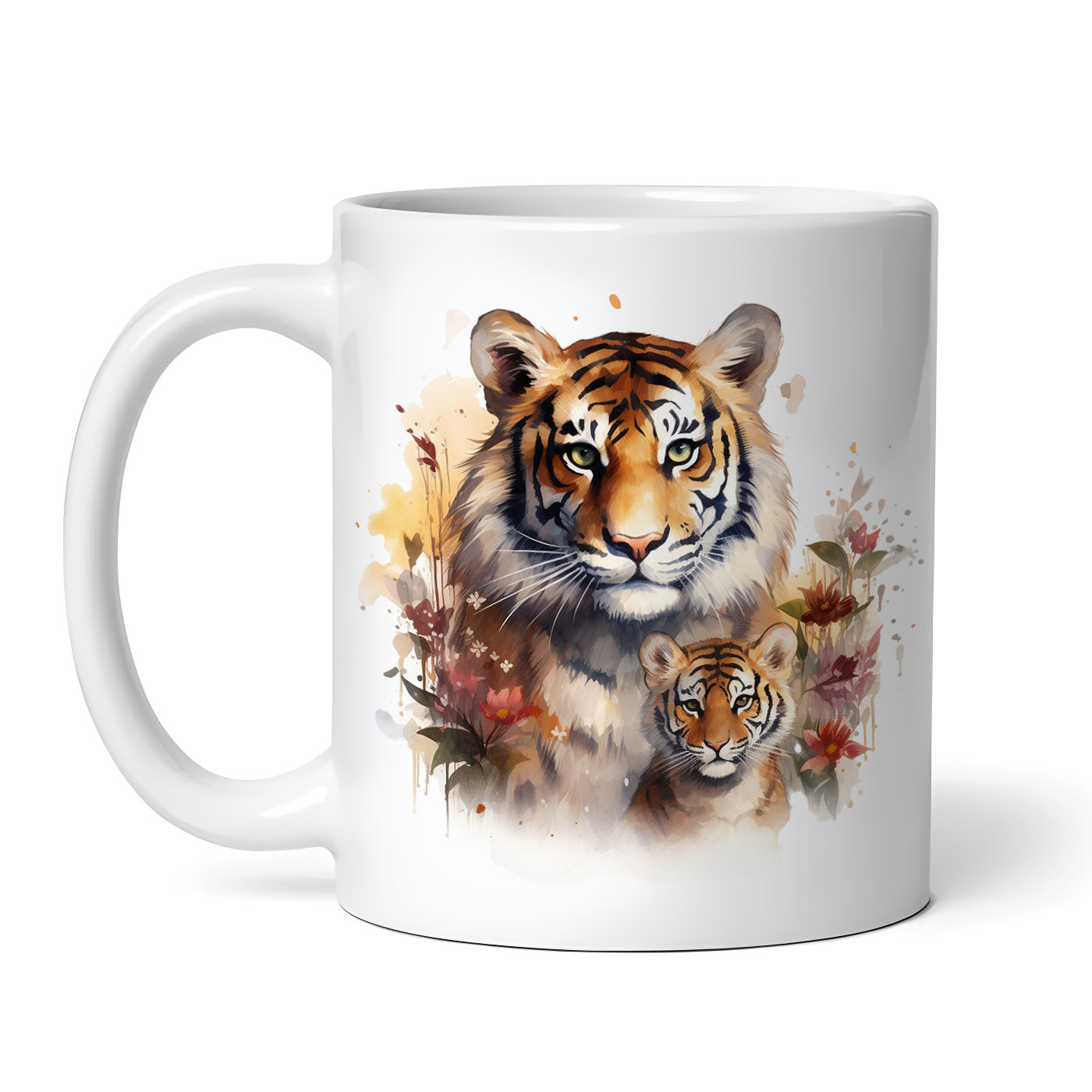 Cana ceramica, Tigrul cu puiul, NO2147, 330 ml, Multicolor