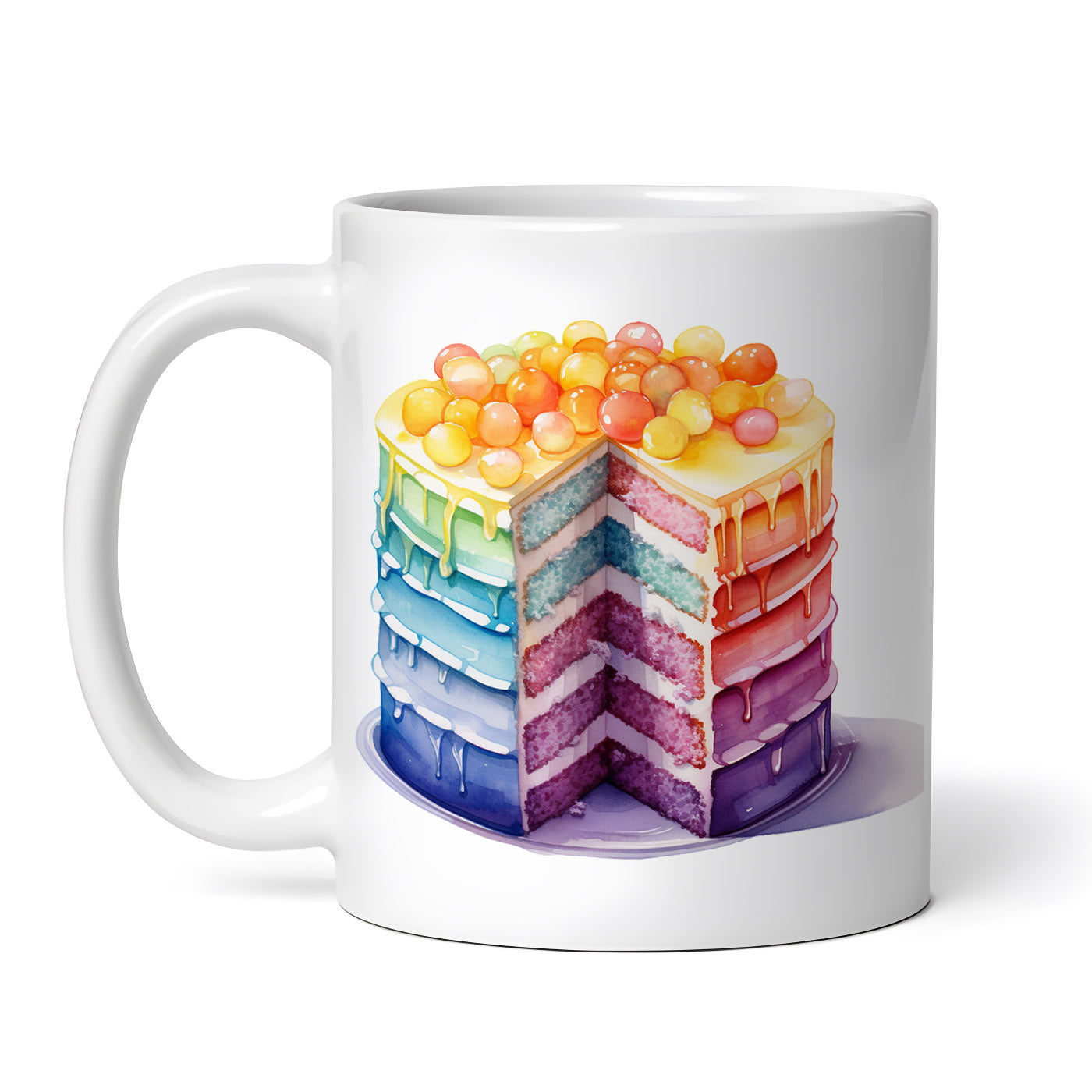 Cana ceramica, Tort curcubeu cu bomboane, NO3580, 330 ml, Multicolor