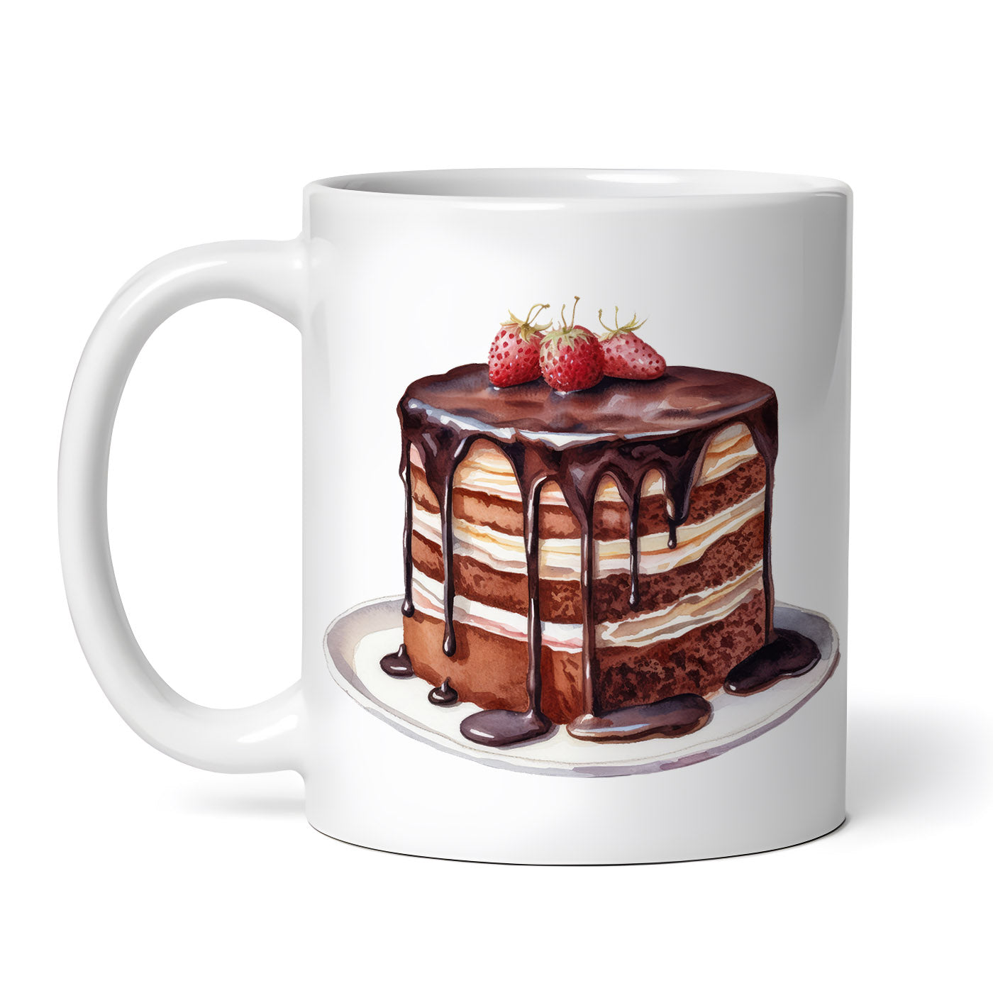 Cana ceramica, Tort de ciocolata cu capsune, NO5681, 330 ml, Multicolor
