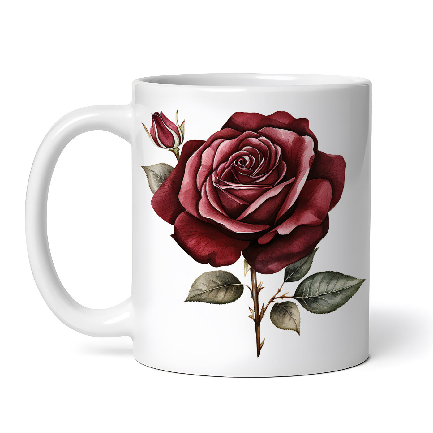 Cana ceramica, Trandafir cu boboc rosu, NO1286, 330 ml, Multicolor