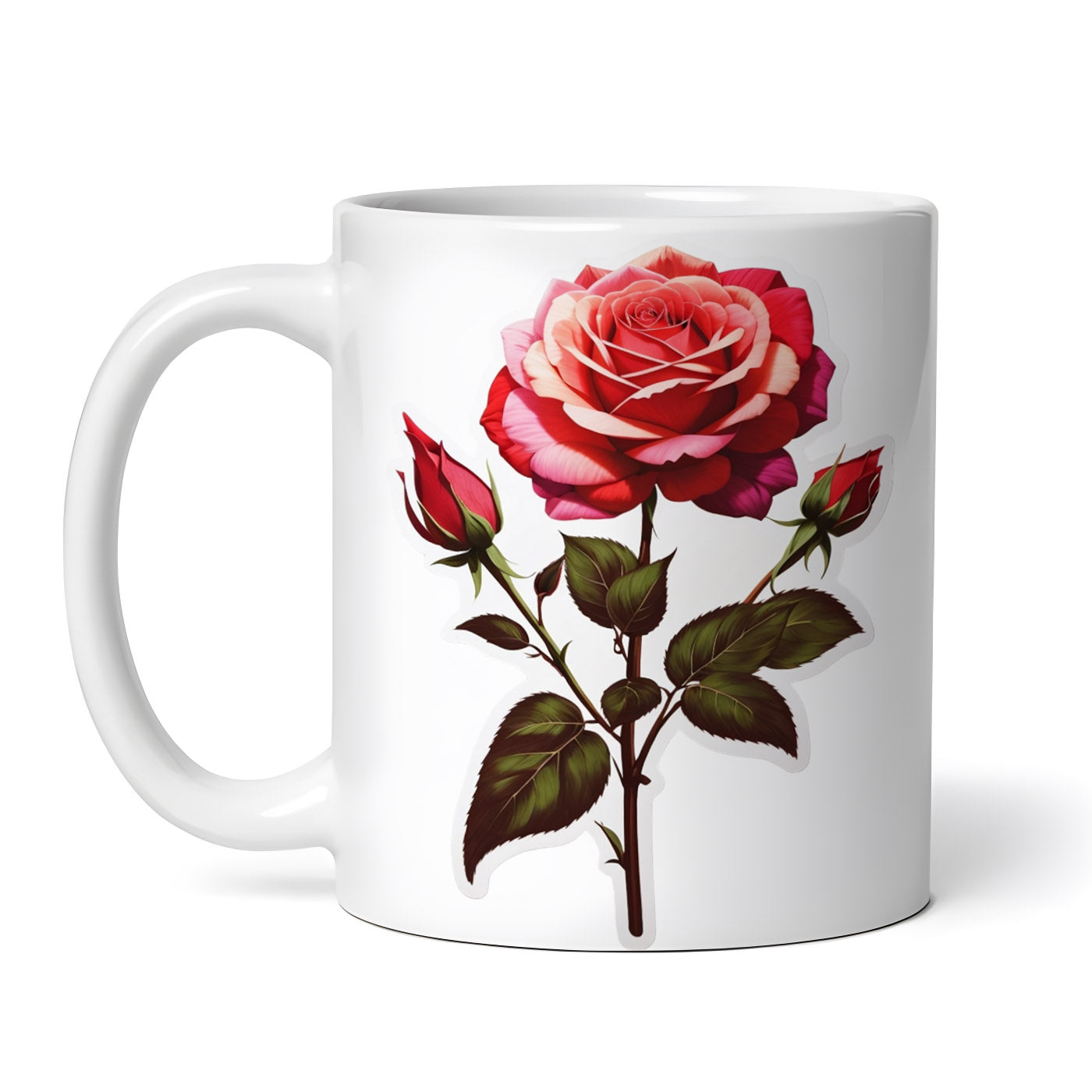 Cana ceramica, Trandafir cu boboci si frunze, NO8809, 330 ml, Multicolor
