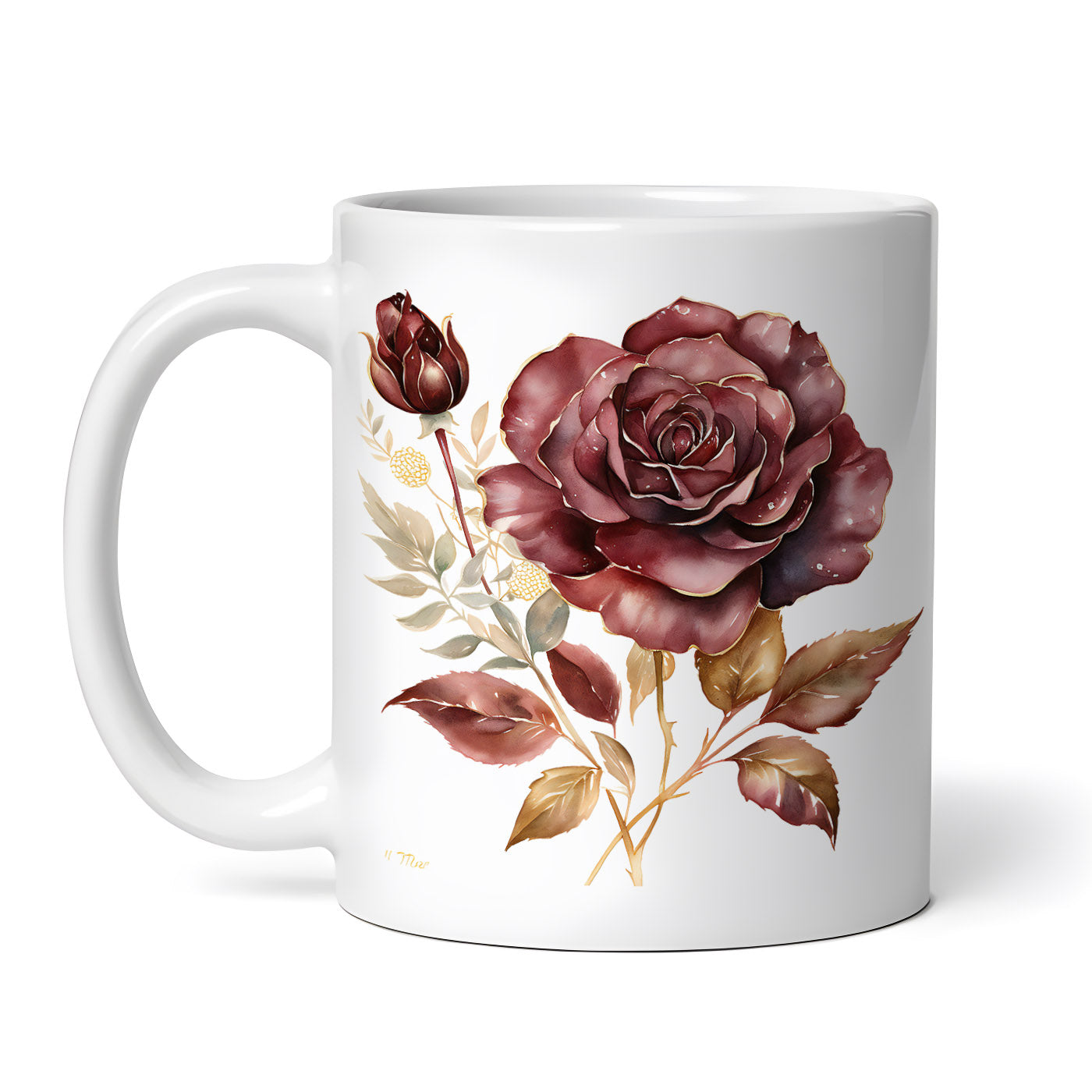 Cana ceramica, Trandafir inflorit cu boboc, NO1777, 330 ml, Multicolor