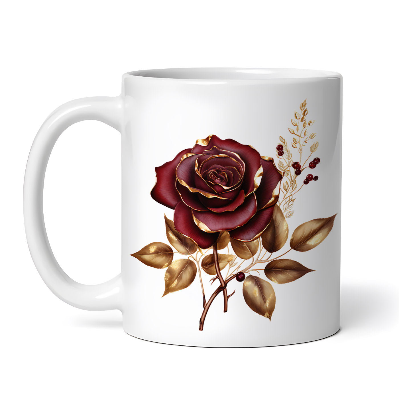 Cana ceramica, Trandafir rosu aurit, NO3164, 330 ml, Multicolor