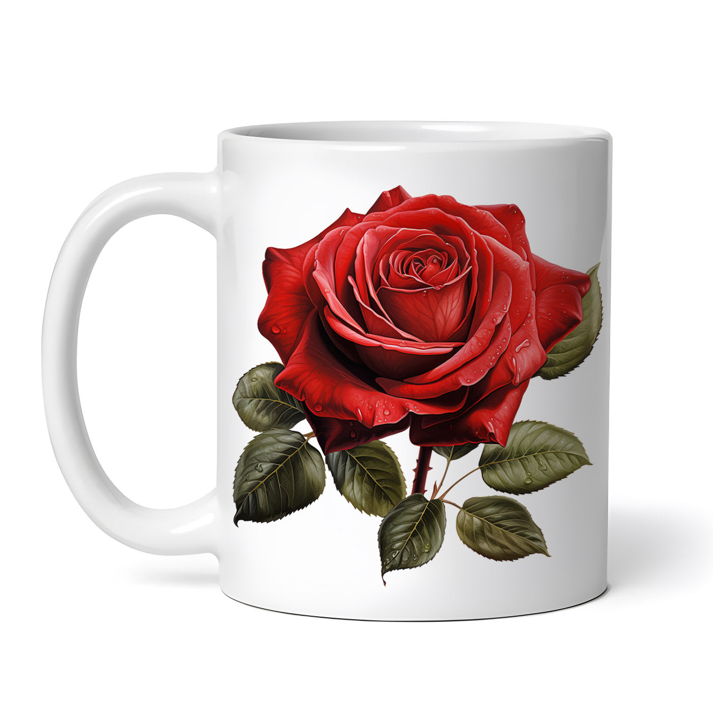 Cana ceramica, Trandafir rosu Singuratate, NO6035, 330 ml, Multicolor