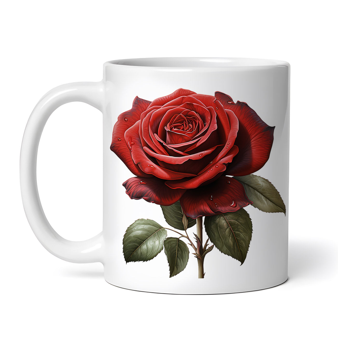 Cana ceramica, Trandafir rosu Solitudine, NO1596, 330 ml, Multicolor