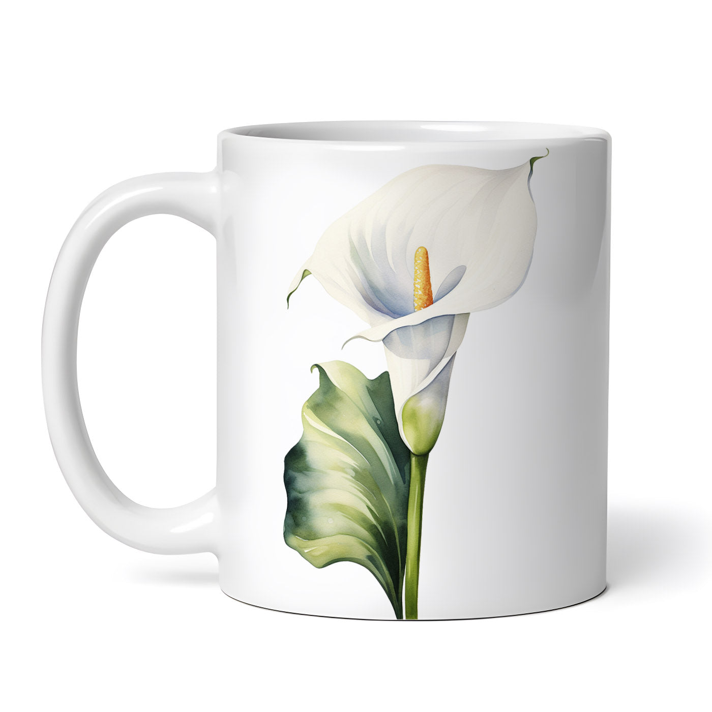 Cana ceramica, Un crin alb cu frunza, NO4408, 330 ml, Multicolor