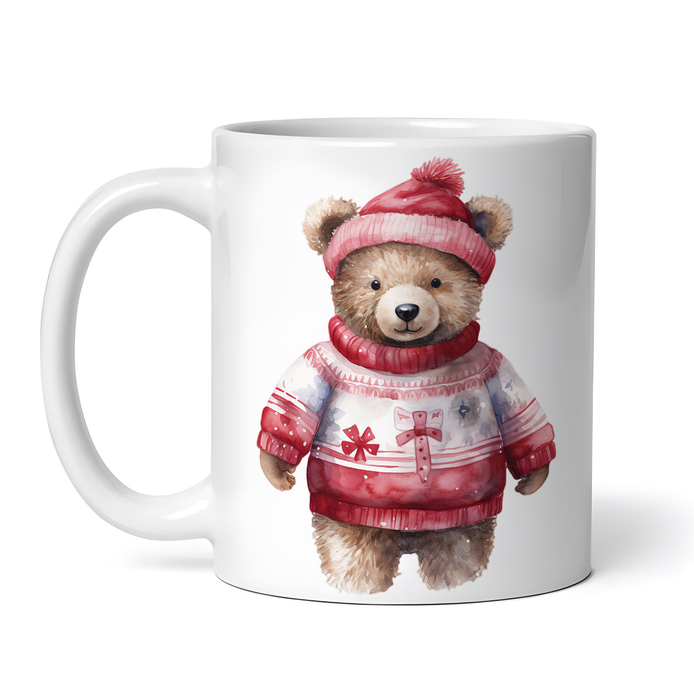 Cana ceramica, Urs cu caciula si pulovar de craciun, NO2829, 330 ml, Multicolor