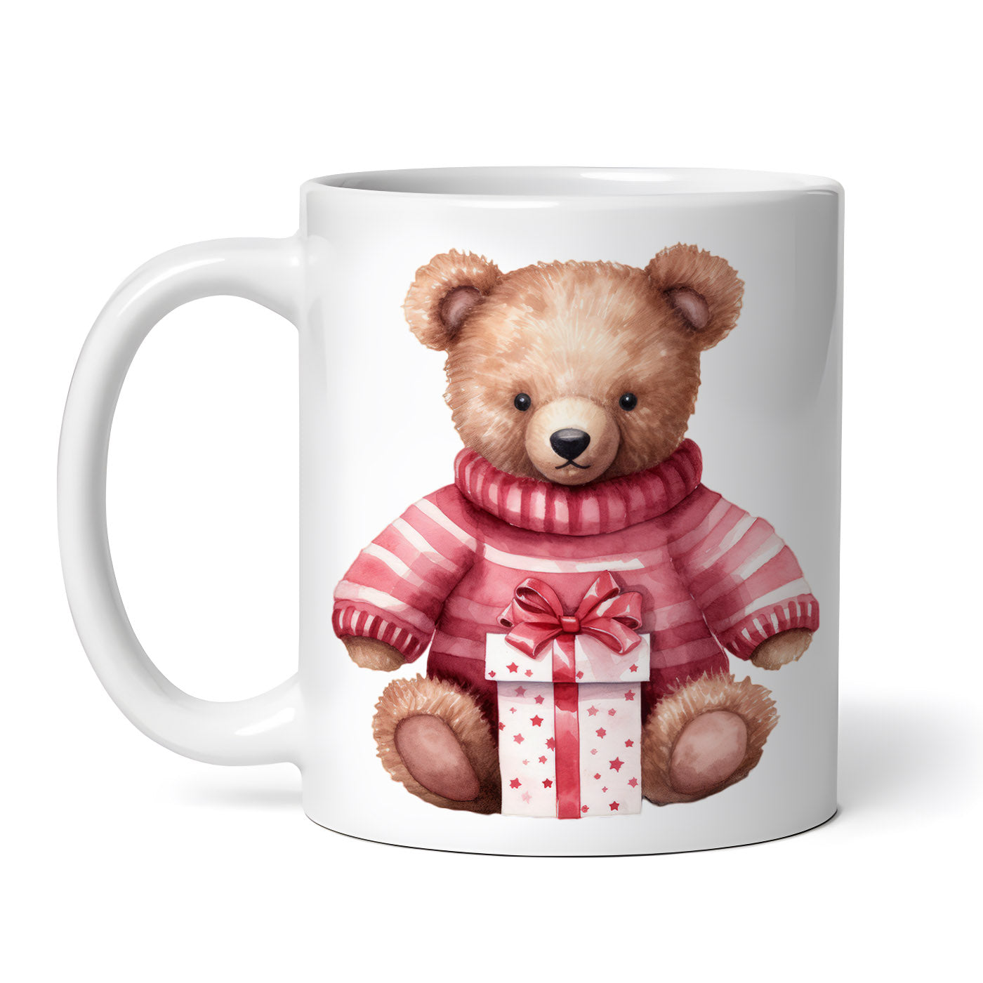 Cana ceramica, Urs cu cadou de craciun, NO6066, 330 ml, Multicolor