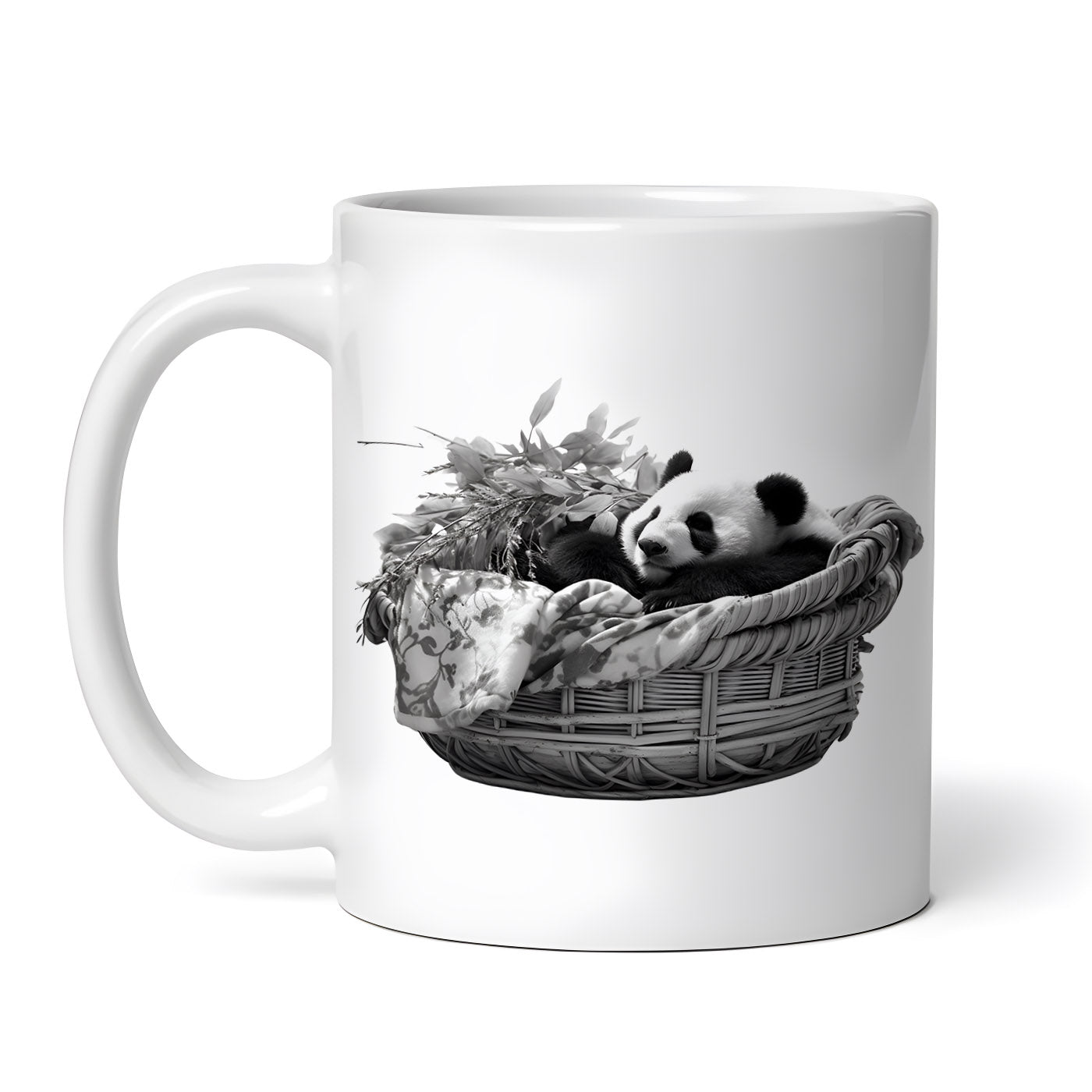 Cana ceramica, Urs Panda in cos de nuiele cu flori, NO1197, 330 ml, Multicolor
