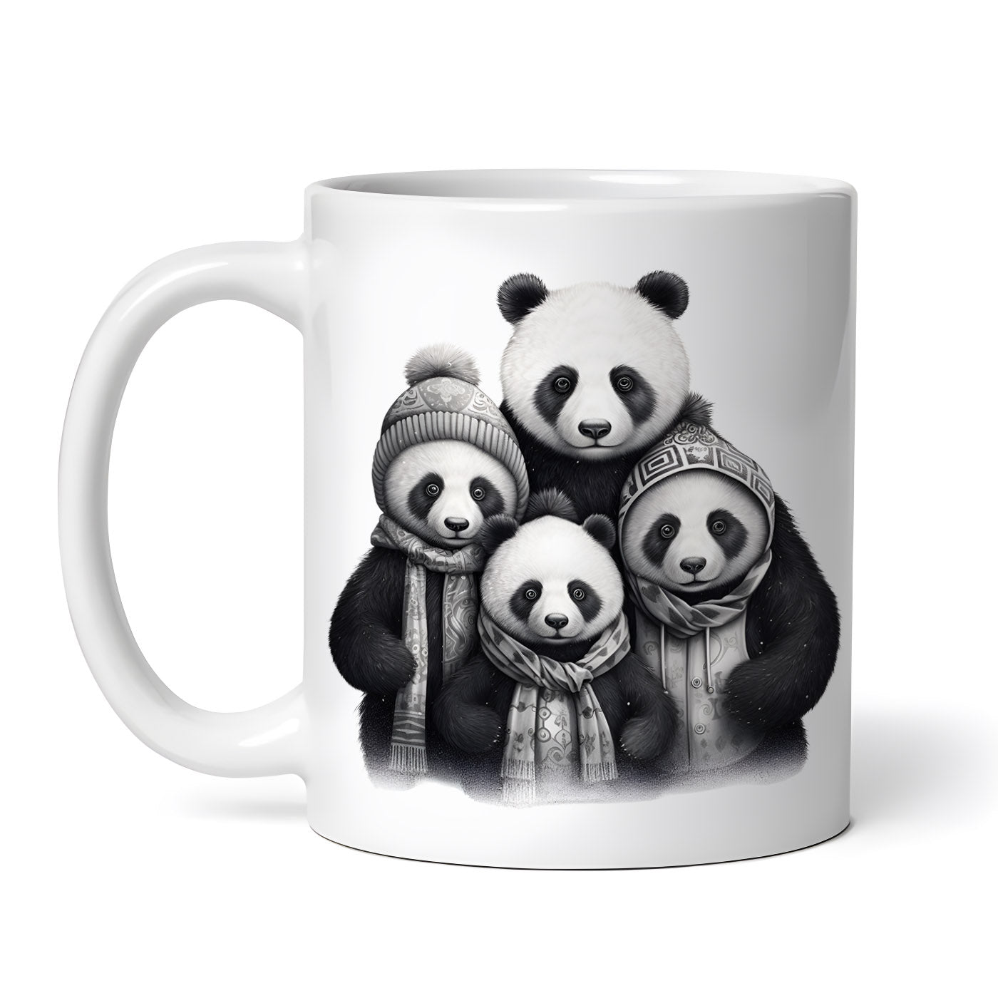 Cana ceramica, Ursi panda cu pui, NO1465, 330 ml, Multicolor