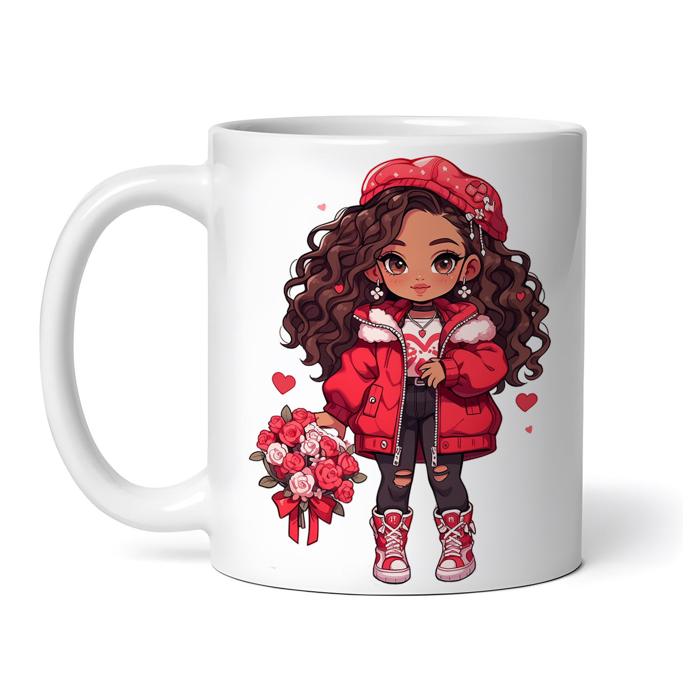 Cana ceramica, Valentine Girl Fata cu bereta, NO4854, 330 ml, Multicolor