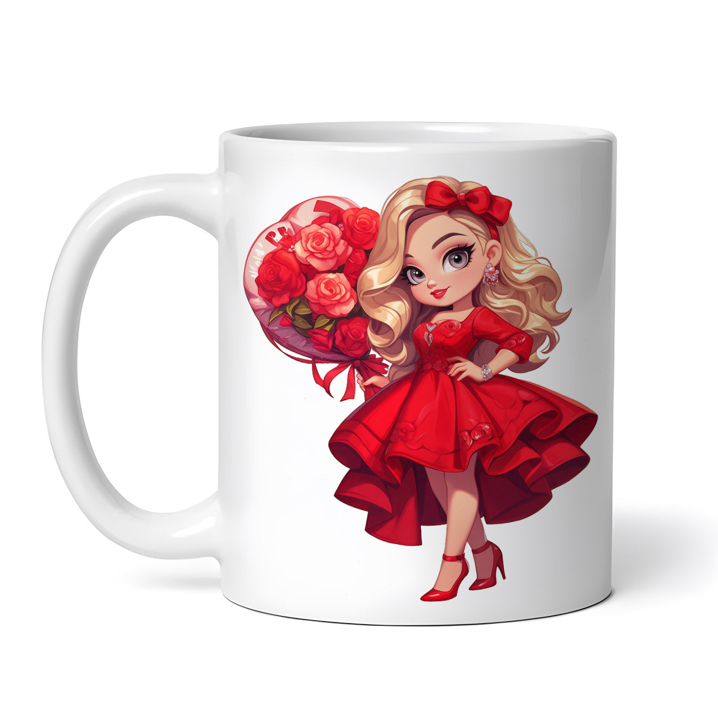 Cana ceramica, Valentine Girl Fata cu buchet de flori, NO4366, 330 ml, Multicolor