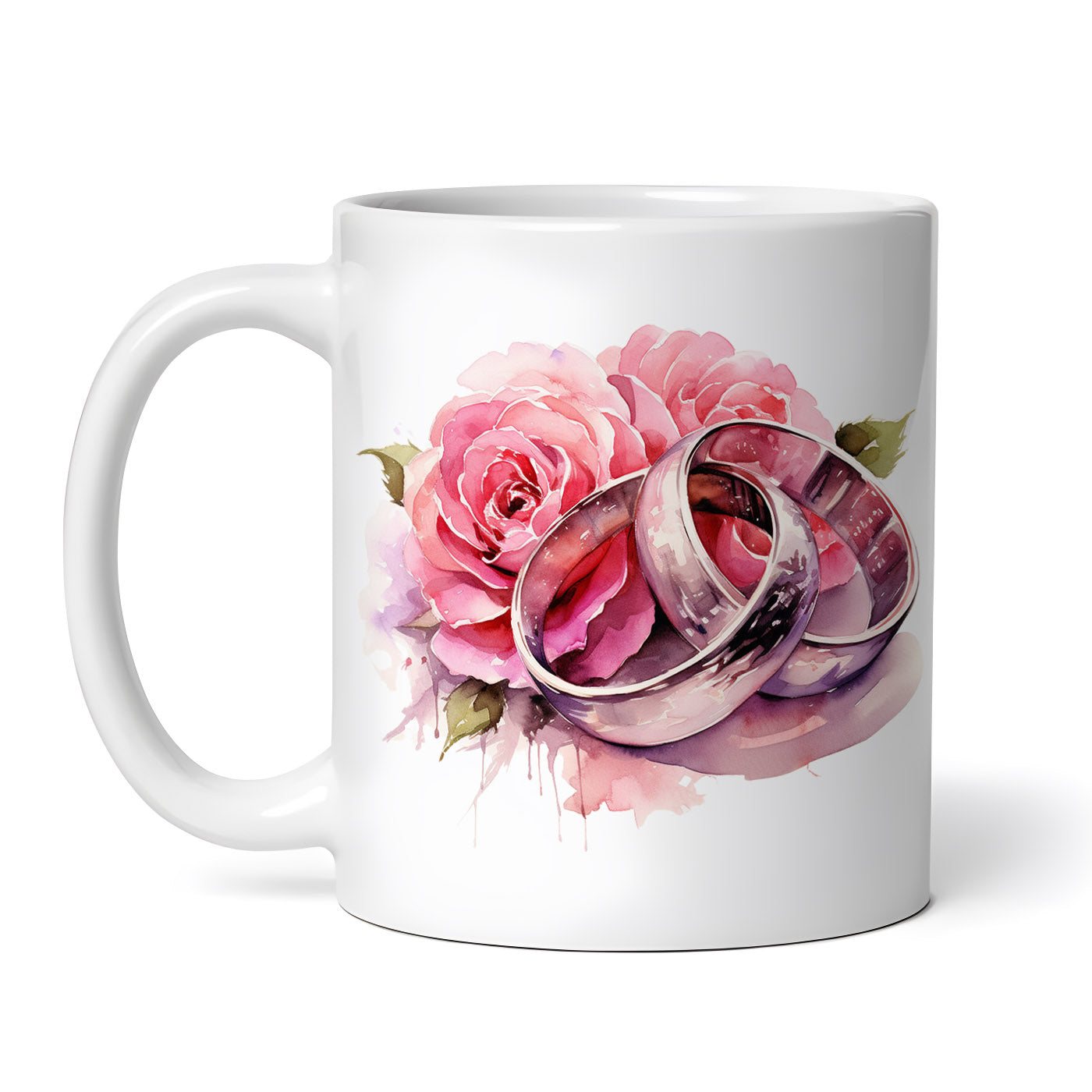 Cana ceramica, Verighete si trandafiri, NO2814, 330 ml, Multicolor